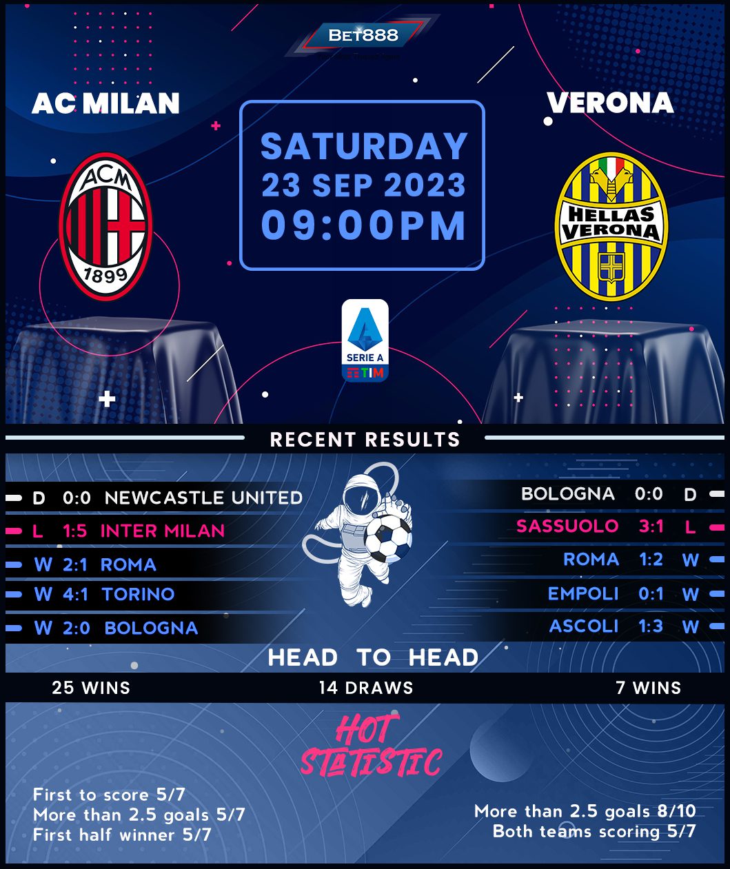 After a demoralizing 5-1 thumping at the hands of Inter Milan in last weekend’s Derby della Madonnina, AC Milan spurned a catalog of opportunities en route to drawing 0-0 against Newcastle United in midweek Champions League action. Despite opening the new Serie A campaign with three consecutive victories before Inter knocked them down from an eye-catching run, ‘I Rossoneri’ are at risk of falling out with the San Siro faithful. Verona’s visit to Lombardy promises to bring them back within fans’ good grace, with Milan going unbeaten in this fixture on home turf for over a century. More precisely, they’ve not lost any of their last 37 H2Hs at San Siro (W21, D16) despite last keeping a clean sheet in this match-up in 2014.