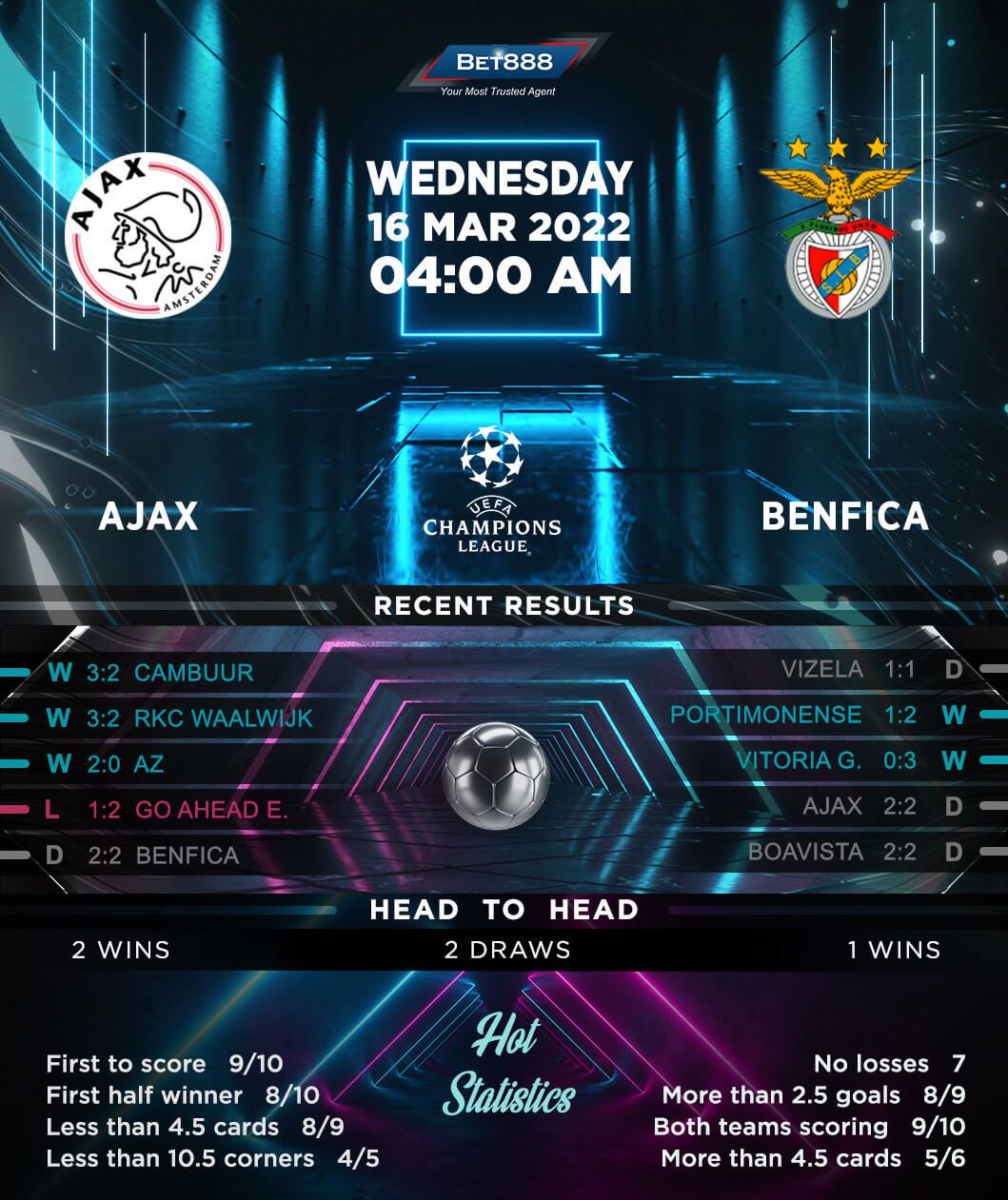 In addition to ousting Ajax’s bitter domestic rivals PSV back in the Champions League play-off round, Benfica left Barcelona in their wake en route to setting up this last-16 tie. Benfica’s goalless draw in Eindhoven in the second leg of their victorious play-off tie against PSV made it six unbeaten matches across their last seven UEFA-sanctioned visits to the Netherlands (W1, D5). Home and away, the ‘Eagles’ have suffered just a single defeat in their last 16 European fixtures against Dutch clubs (W8, D7), courtesy of a 1-0 loss at Ajax in the 2018/19 Champions League group phase. Furthermore, Benfica have been victorious in 70% of their two-legged ties against Dutch sides (W7, L3), winning each of the last five on the trot. Nelson Verissimo’s men are unbeaten in all four competitive away matches in 2022 (W3, D1) despite failing to keep a clean sheet in three of them.