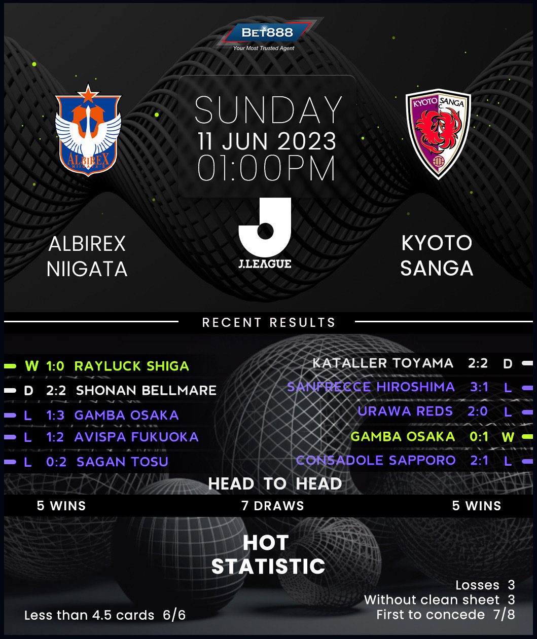 Despite pulling off a narrow 1-0 win over lower-league outfit Reilac Shiga in midweek Emperor’s Cup action, there’s no reason for optimism in the Albirex Niigata camp, considering they’re winless in their last three J1 League outings (D1, L2), conceding 2+ goals on each occasion. Furthermore, Rikizo Matsuhashi’s lads have blown hot and cold across eight home league matches this season (W3, D2, L3) and are winless in three of their last four such match-ups (D1, L2). With that in mind, Kyoto’s visit to the town is hardly encouraging for Alibrex, as they’ve failed to win six times in their seven most recent H2Hs on home turf (D4, L2), all competitions included.