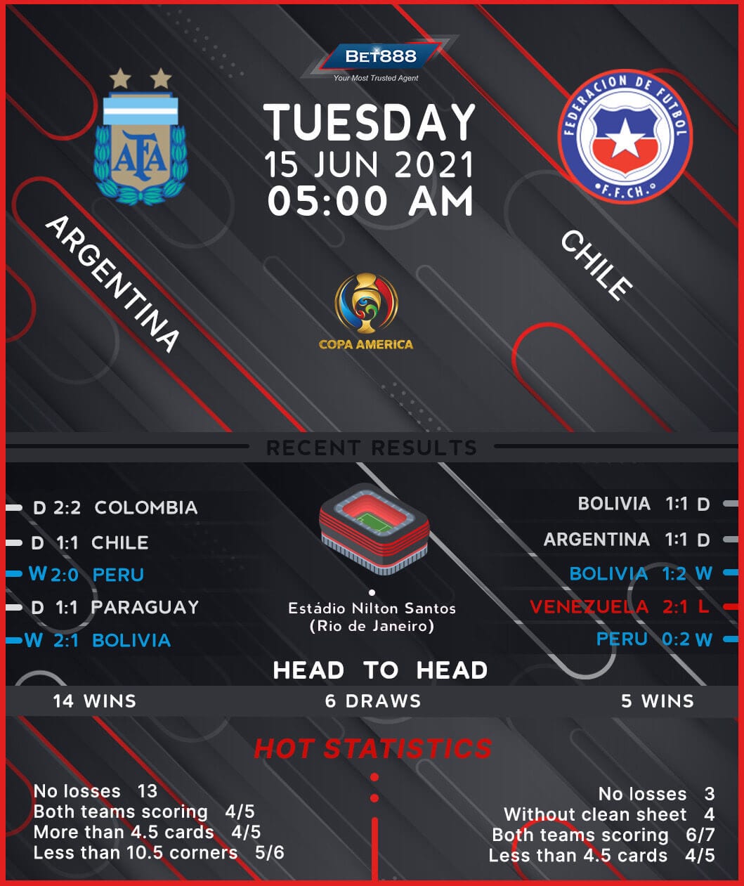 Argentina and Chile go head-to-head at the Estádio Olímpico Nilton Santos in Rio de Janeiro in a mouth-watering Copa America 2021 clash.