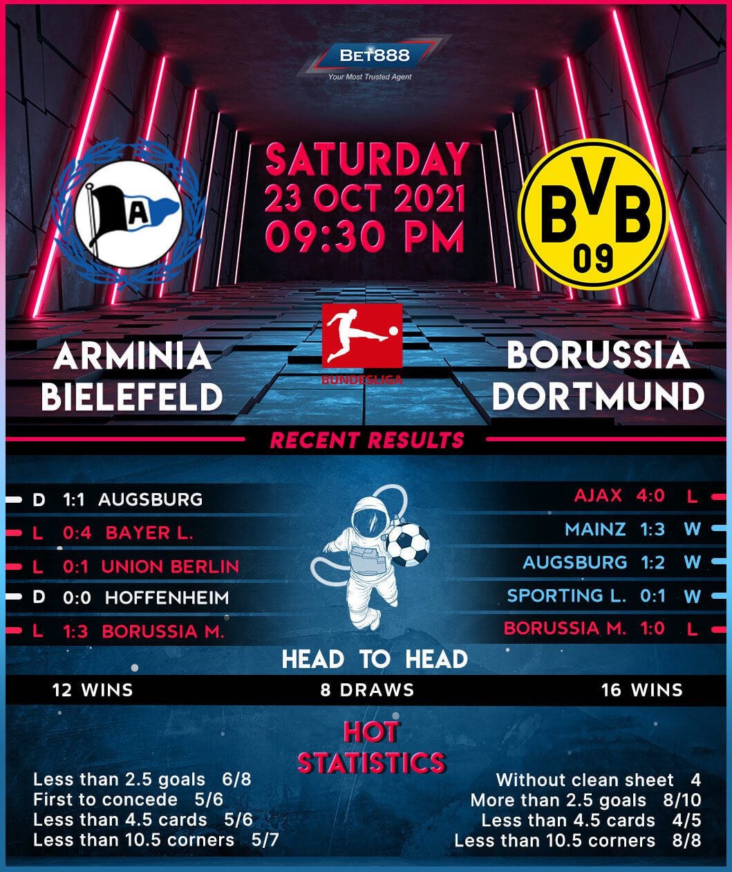 Relegation-threatened Arminia Bielefeld will play host to second-placed Borussia Dortmund at Schüco Arena, seeking their first Bundesliga H2H goal since May 2008.