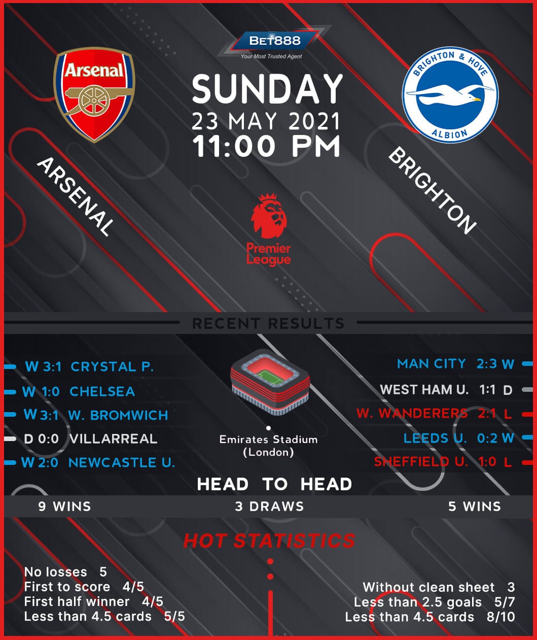 Arsenal and Brighton & Hove Albion will trade tackles at the Emirates Stadium this weekend in the final matchday of the 2020/21 Premier League season.