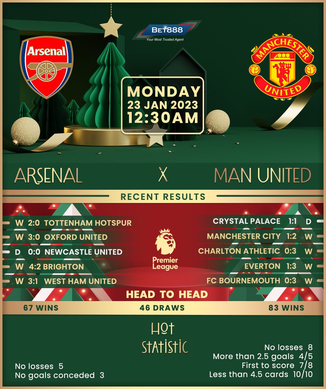 In the meantime, visiting Manchester United suffered a late heartbreak at Crystal Palace in midweek Premier League action, as Michael Olise’s last-gasp strike held them to a 1-1 draw. After being knocked down from an impressive nine-game winning streak in all competitions, the ‘Red Devils’ head to the Emirates, where they’ve lost three of their last four Premier League meetings with Arsenal (D1), failing to score three times in the process. But as the only side to have beaten the ‘Gunners in the Premier League this season (3-1), Erik ten Hag’s men are gunning for only their second top-flight double over this opposition since Sir Alex Ferguson’s retirement in 2013. After winning two of their last three away league matches (D1), they should be confident about achieving that feat.