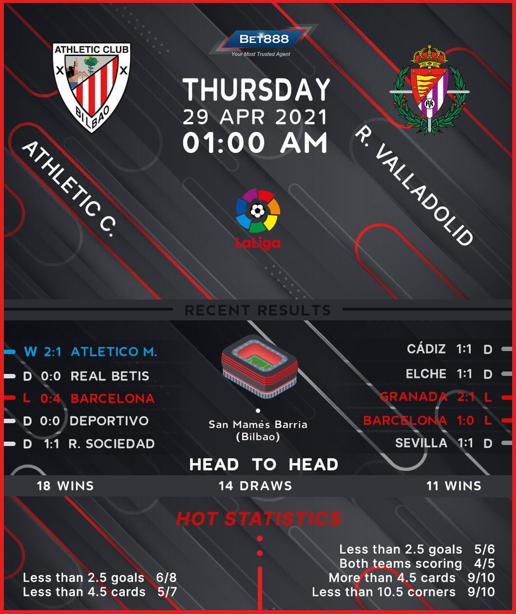 Athletic Bilbao will be looking to exact revenge on Real Valladolid for a 2-1 defeat in the reverse fixture earlier in the season when the two sides meet at the Estadio San Mamés this midweek.