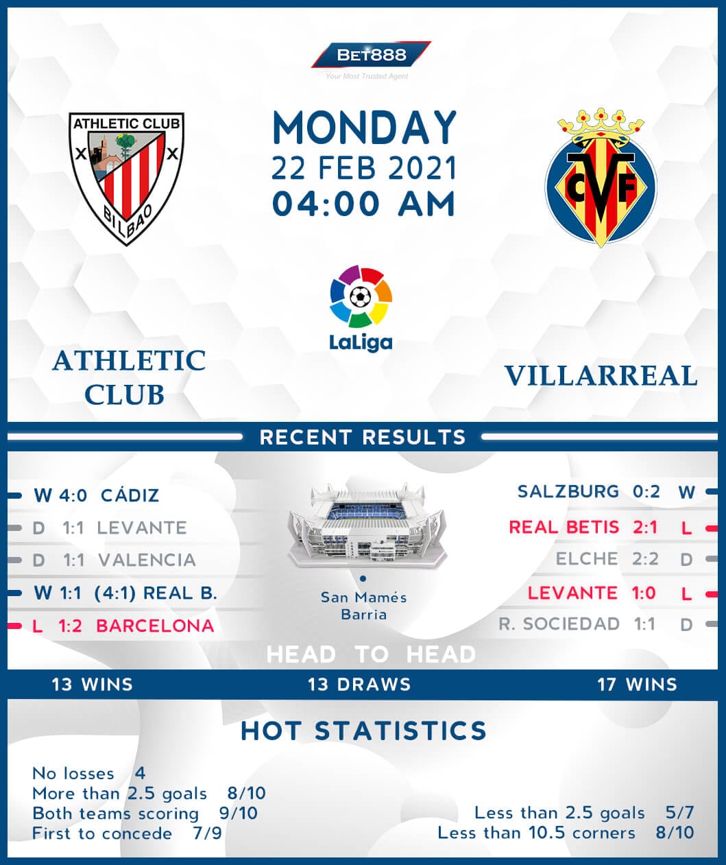 Athletic Club have struggled to establish consistency throughout this La Liga campaign. Yet, a 4-0 away thumping of Cadiz last time out provides them the opportunity to post back-to-back league wins for the first time this season. Curiously, a 1-1 draw with Valencia in their last La Liga home match marked Athletic’s first top-flight stalemate at home this term (GP:11 – W6, D1, L4). Against this backdrop, three of the last five La Liga meetings between ‘Los Leones’ and Villarreal have ended level (W1, L1), with each of the previous four featuring under 2.5 goals at full-time. However, Marcelino García Toral’s men will be motivated to claim all three points here, as a victory would see them become only the third team in the history of La Liga to reach 900 home wins!