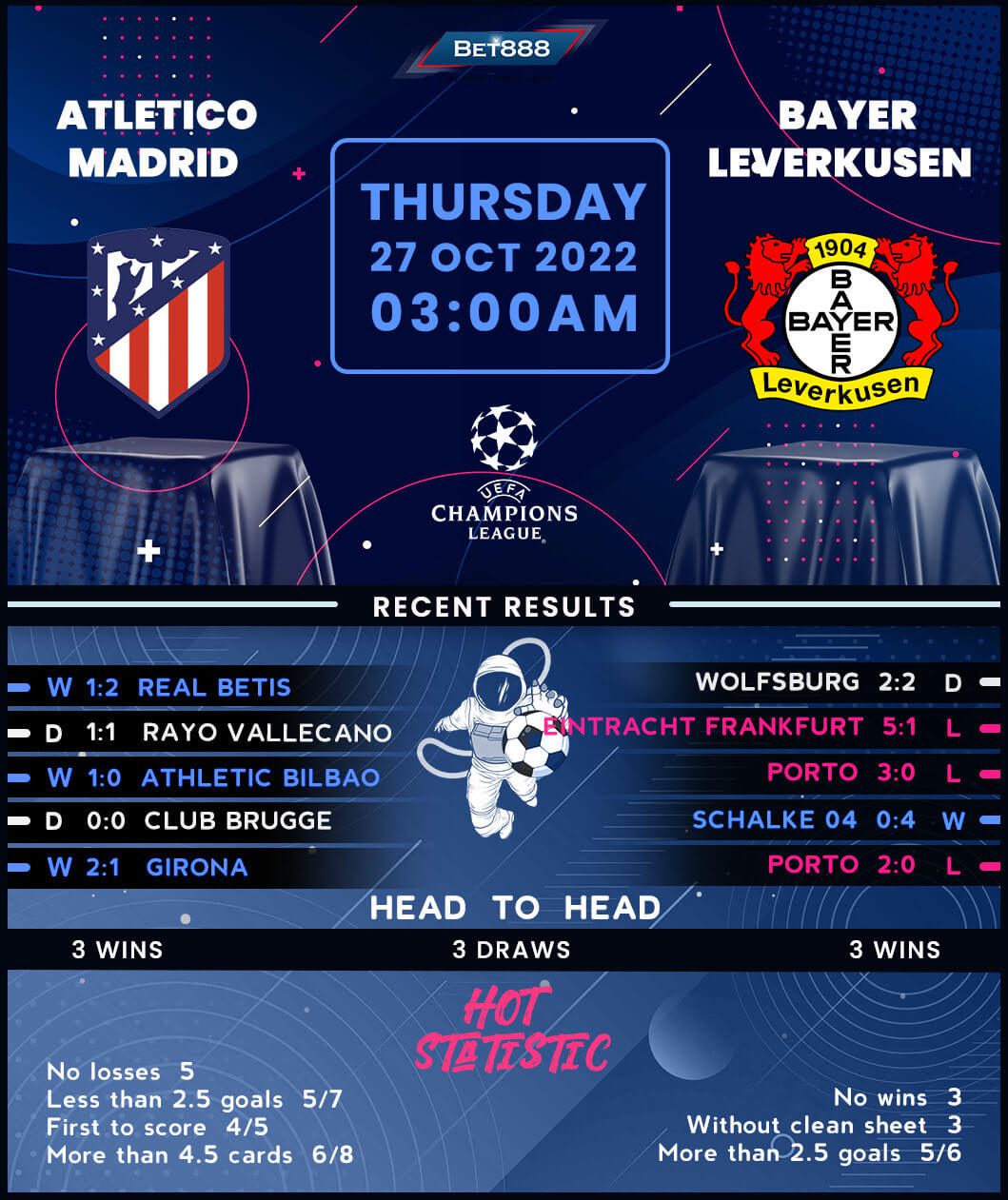 Atletico Madrid’s bid to avoid bowing out of the Champions League group stages for the first time since 2017/18 is up in the air as Bayer Leverkusen arrive at the Metropolitano Stadium for a crunch Group B showdown.