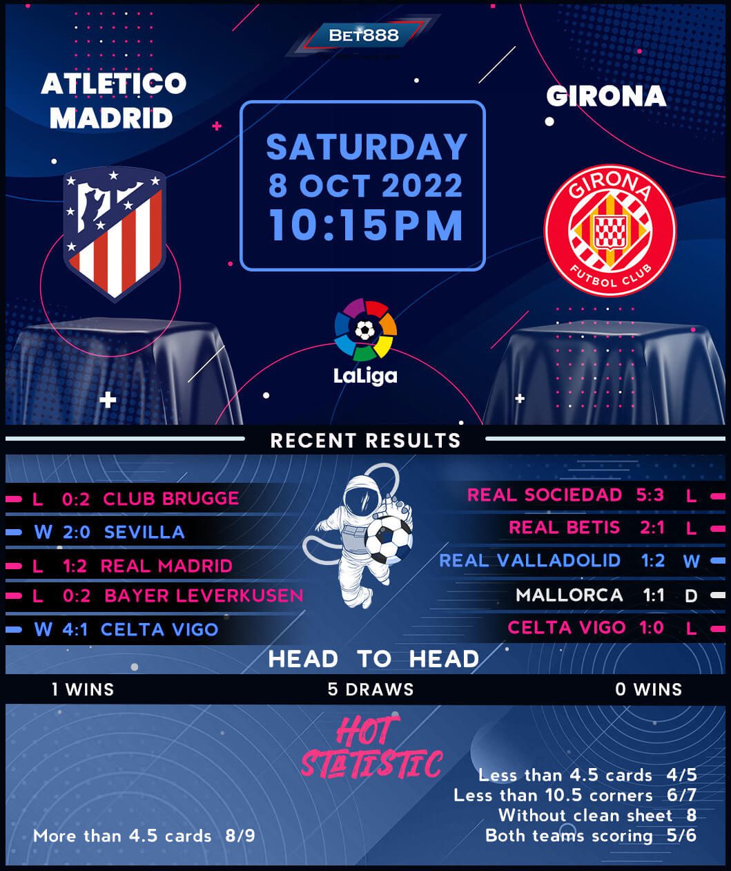Metropolitano Stadium forms the backdrop as Atletico Madrid and Girona meet in only their fifth La Liga encounter.