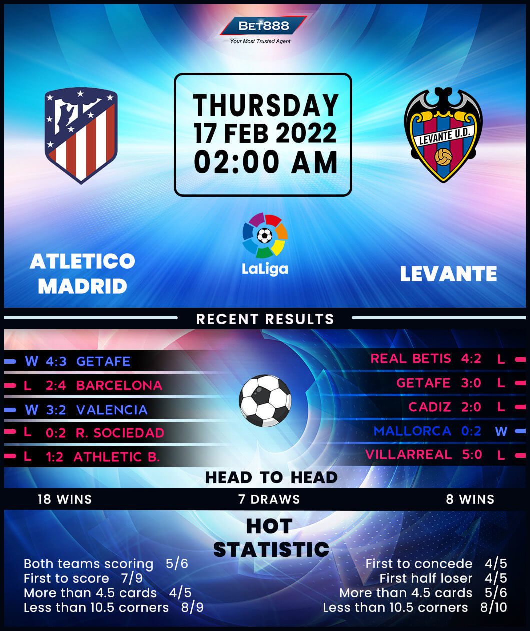 Atletico Madrid will be looking to leapfrog Barcelona to fourth in the La Liga standings when they take on dead-last Levante at the Estadio Wanda Metropolitano.