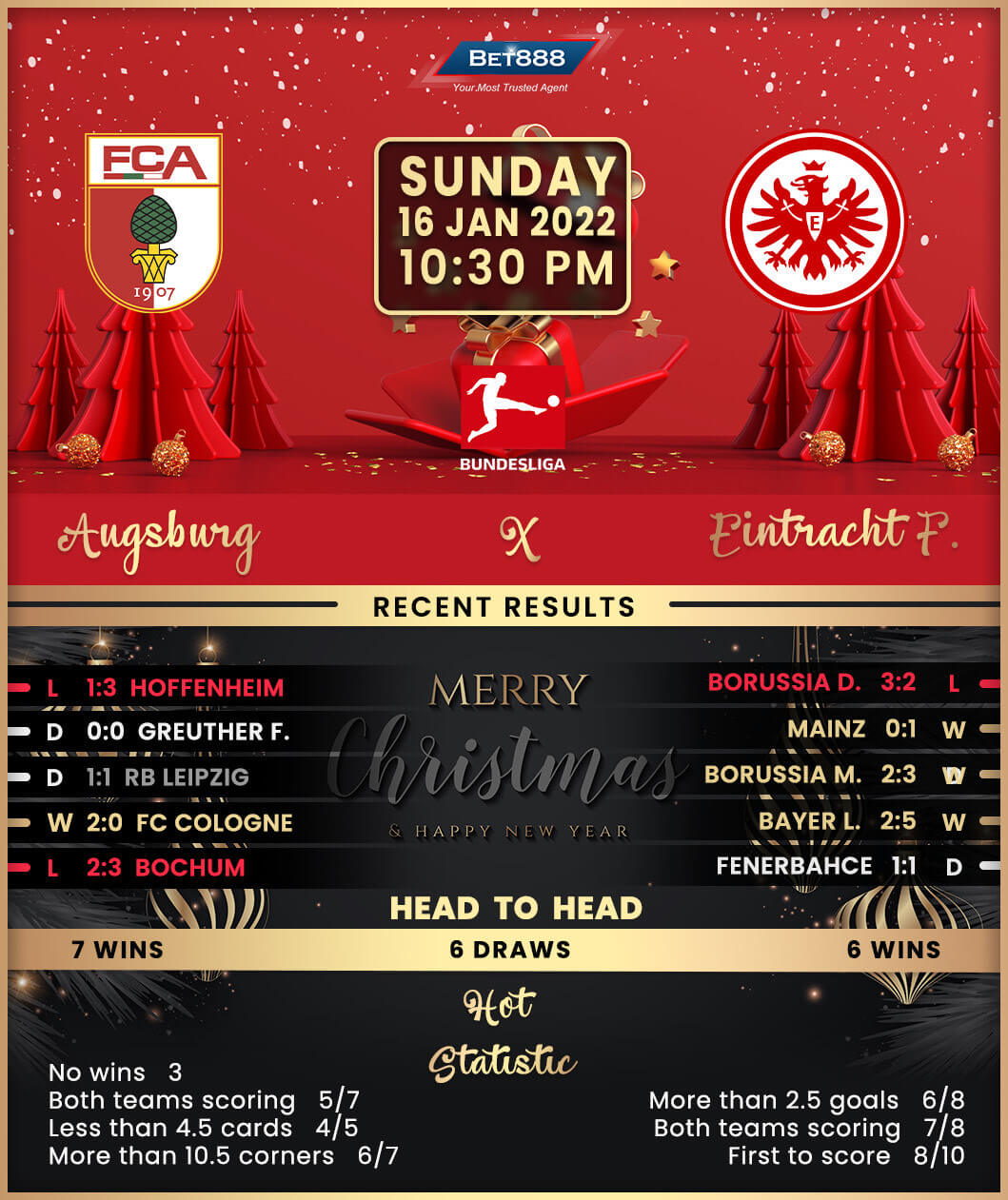 Relegation-threatened Augsburg will be desperate to end a four-game winless Bundesliga streak against Eintracht Frankfurt (D1, L3) when the two sides lock horns at the WWK Arena.