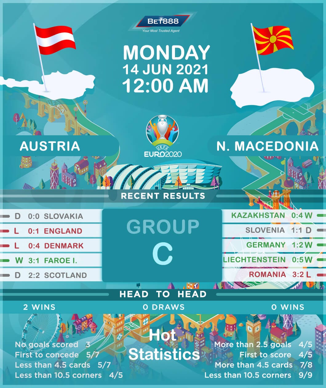 Austria are taking part in their third European Championship finals, though they have qualified for the final tournament through the qualification process for the second time. Disturbingly, though, ‘Das Team’ lament a terrible record at the Euro finals, as they remain the only team to contest six or more matches in the competition without ever claiming a win (D2, L4). Moreover, the Austrians have scored just twice at the European Championship tournament, with one of those two strikes coming from the spot. Bringing Austria’s World Cup record into the equation, they have failed to win 14 of their last 15 matches at major tournaments (D5, L9). However, Franco Foda’s men have outscored North Macedonia in both of their only previous meetings by an aggregate scoreline of 6-2.