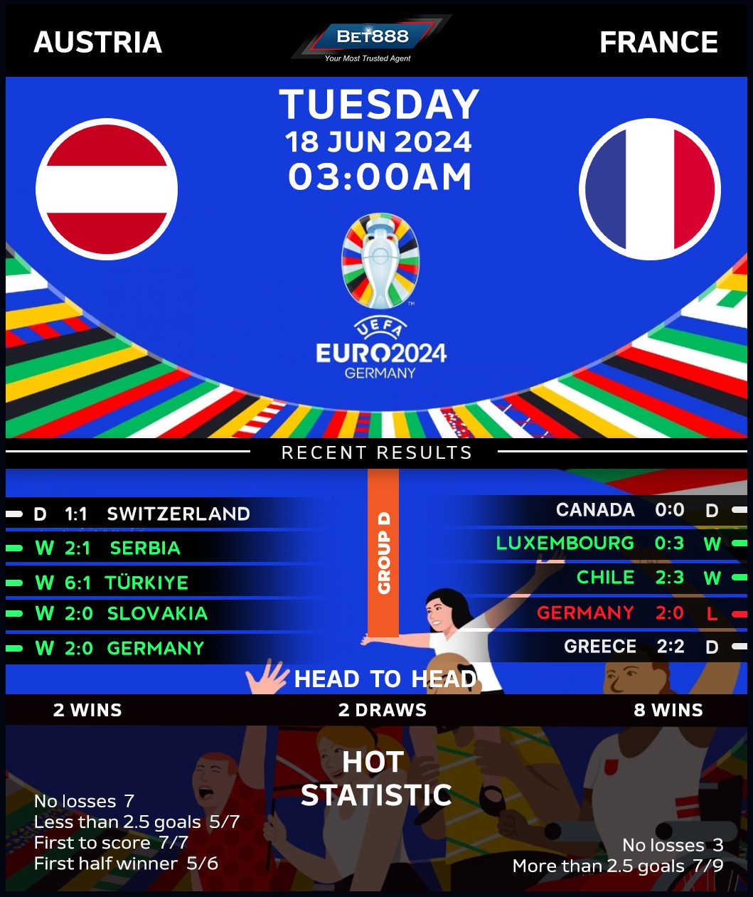 Austria and France are set to lock horns at the Merkur Spiel-Arena in their opening game of Euro 2024 Group D.