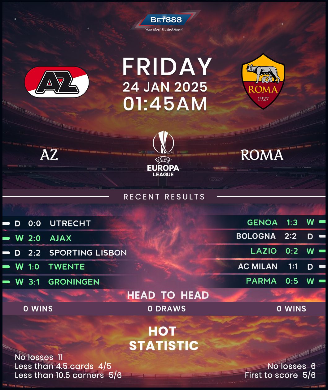 AFAS Stadion is the venue as AZ Alkmaar and Roma go head-to-head in a high-stakes UEFA Europa League showdown.