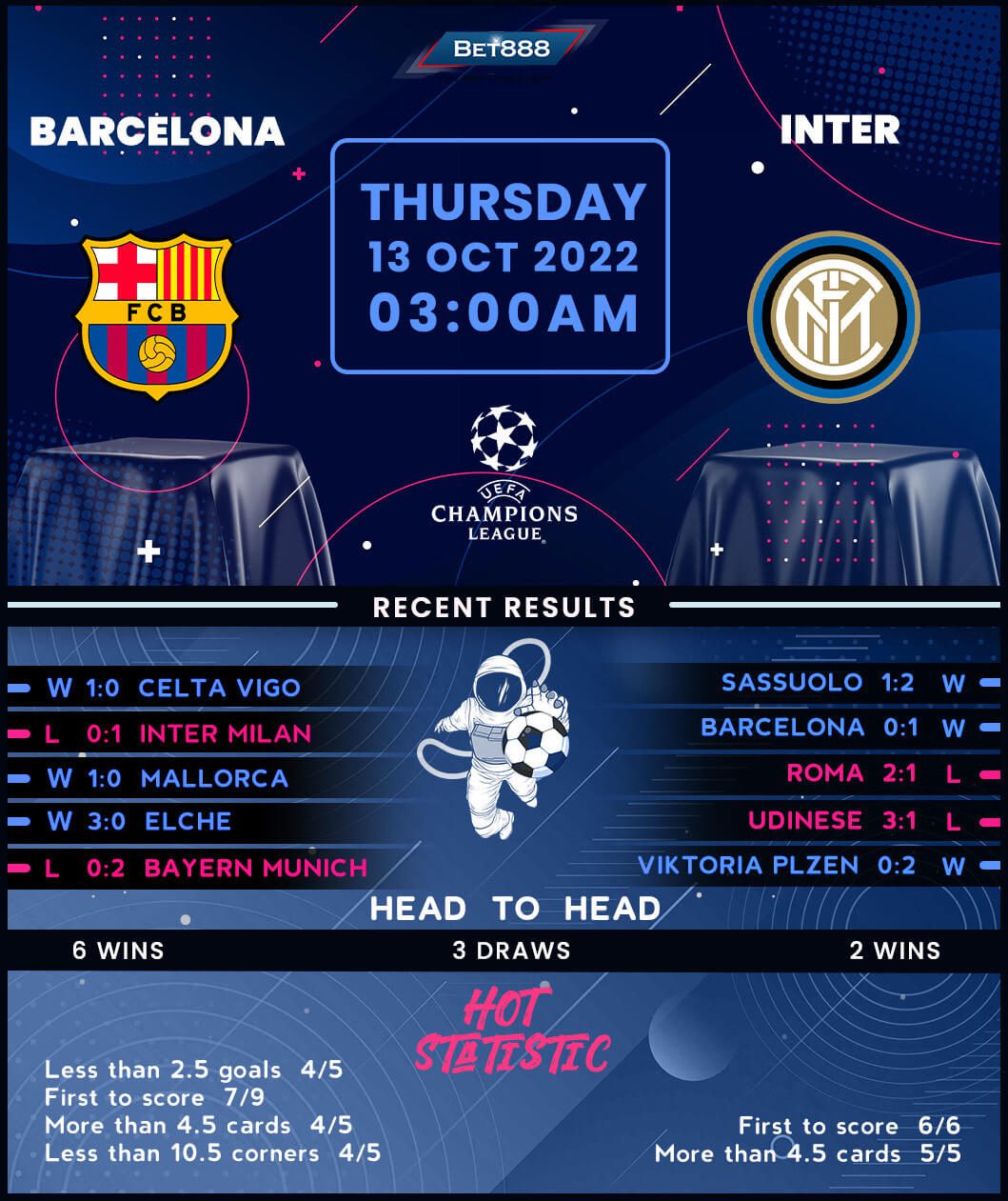 As for Inter Milan, after a 2-0 home defeat to Group C leaders Bayern Munich on day one, they’ve strung together consecutive Champions League wins to seize a coveted runner-up spot. However, you’d have to go back to 2004 for Inter’s last Champions League triumph on Spanish soil, with ‘I Nerazzurri’ going winless in eight successive such fixtures since a 5-1 thumping of Valencia 18 years ago (D1, L7). What’s more, last season’s Serie A runners-up have lost all five Champions League visits to Barcelona, failing to trouble the scoreboard on four occasions. Despite entering this contest as pre-match outsiders, Inter can at least fall back on a two-game winning streak in the run-up to this fixture, including a hard-earned 2-1 victory at Sassuolo over the weekend.
