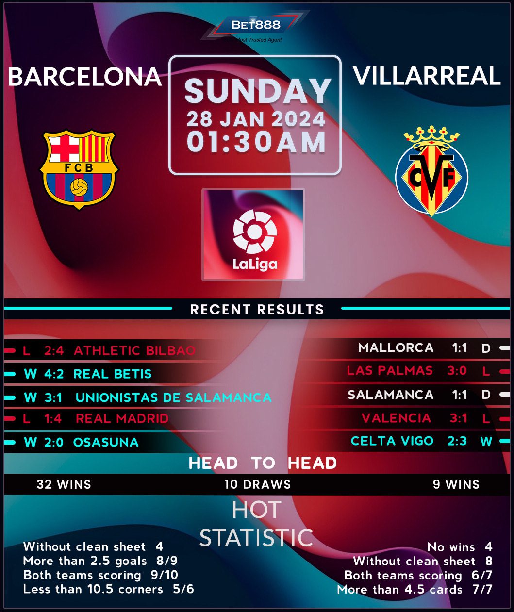 Estadi Olímpic Lluís Companys is the venue as Barcelona and Villarreal go head-to-head in a high-stakes La Liga encounter.