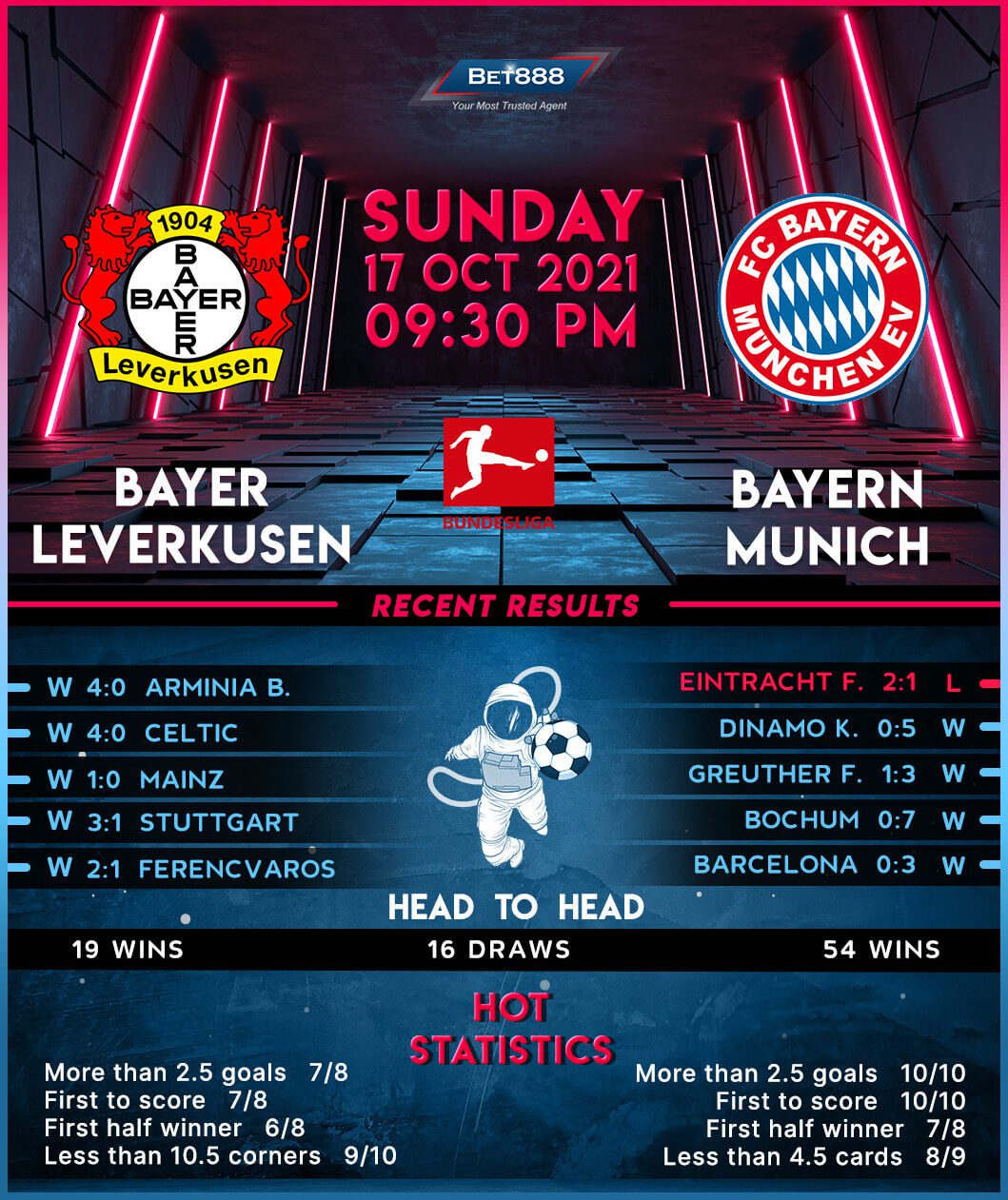 High-flying Leverkusen won five consecutive matches in all competitions, including the last two via an eye-catching 4-0 scoreline, before the international break stood in their way. In the Bundesliga alone, ‘Die Werkself’ have racked up a three-game winning streak since a 4-3 home defeat to Borussia Dortmund in mid-September, with a mere goal difference separating them from top-placed Bayern Munich ahead of the kick-off. After finding the net in every Bundesliga home outing since the start of February (W6, D2, L3), Leverkusen will be confident of troubling Bayern’s defense here, especially early on. In addition to breaking the deadlock in six of their seven top-flight fixtures this season (same as their opposition), the hosts have yet to trail at half-time this Bundesliga campaign.