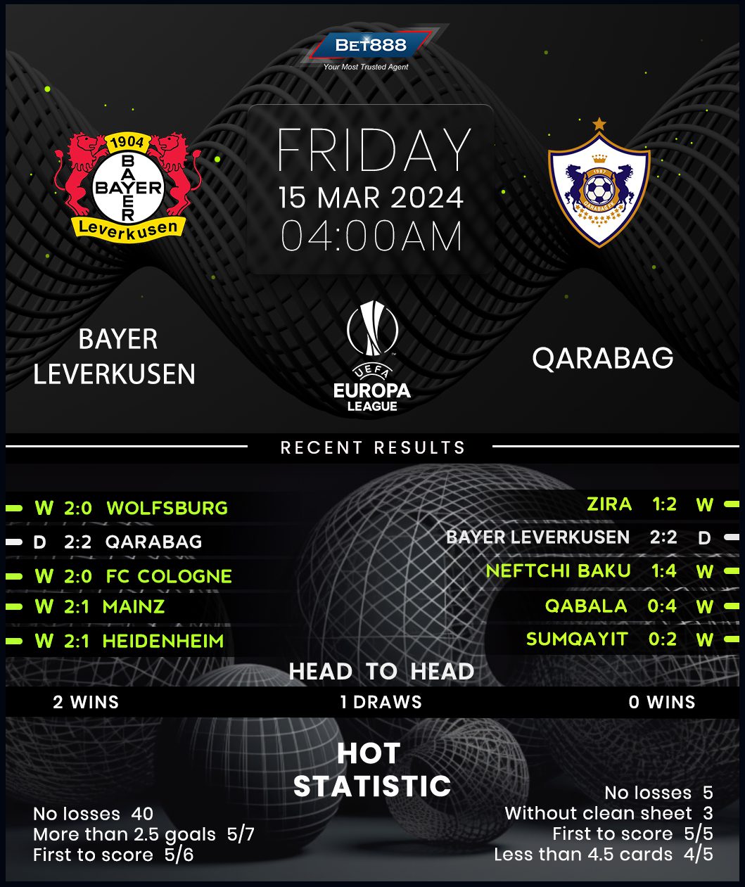 Relentless Bayer Leverkusen will be looking to reach the Europa League quarter-finals when they meet Qarabag at the BayArena in the return leg of their Europa League last-16 tie.