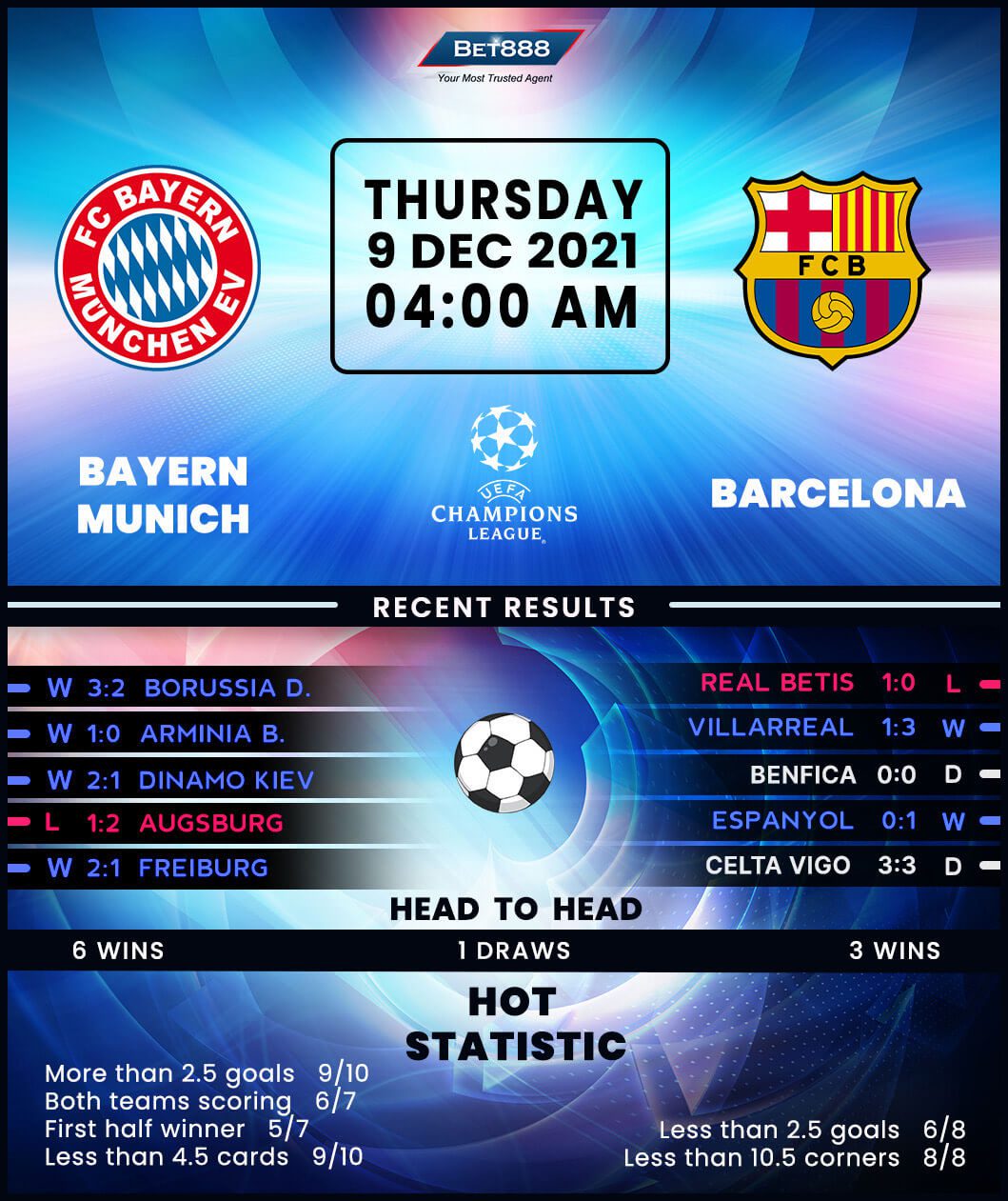 Therefore, Barcelona’s efforts to break their longest-ever losing streak against a single opposition in European football history could prove to be a tall order. After opening their Group E campaign with consecutive 3-0 defeats, the ‘Blaugrana’ have gone unbeaten in their last three in a row (W2, D1) to move two points clear of third-placed Benfica. However, with the Portuguese side boasting a better H2H record, only a victory in Munich would guarantee that Barca would make it out from the Champions League group stages. Yet, Xavi’s side suffered a 1-0 home loss to Betis in the build-up to this trip, seeing their six-match unbeaten streak in all competitions come to a halt (W3, D3). It goes from bad to worse for Barcelona, as they’ve scored just four times across their last eight Champions League fixtures.