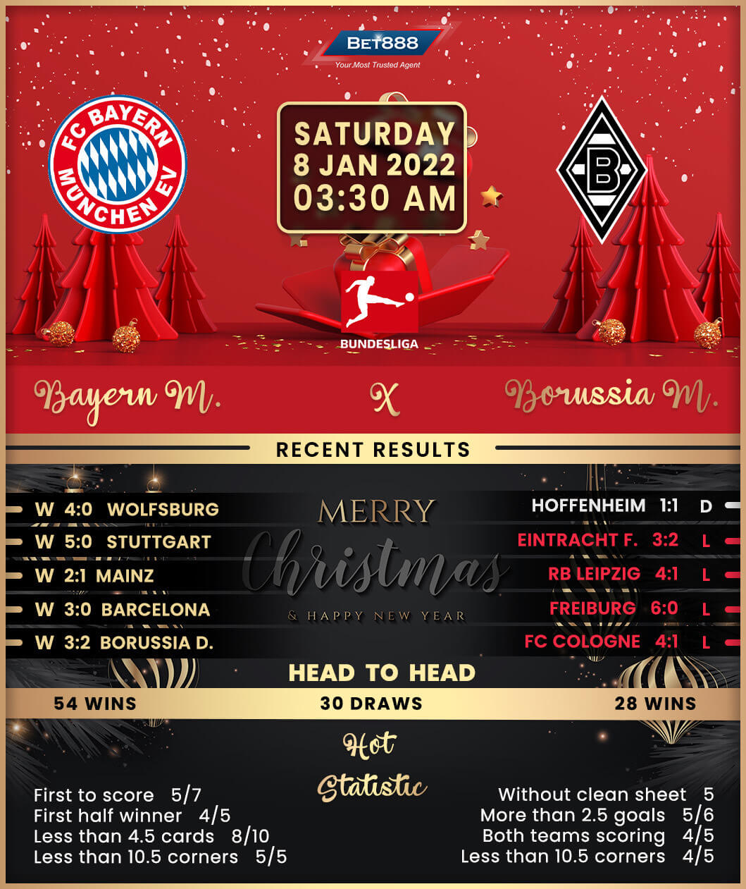 Allianz Stadium is the venue as Bayern Munich and Borussia Monchengladbach go head-to-head in the first Bundesliga fixture of 2022.