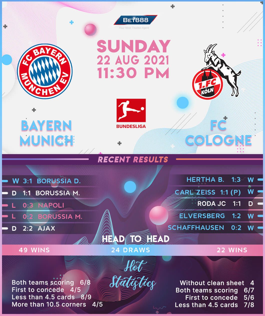 Cologne may not be an easy opposition to push around, though, especially following the visitors’ 3-1 home win over Hertha BSC on Matchday 1. After securing their first comeback victory in the Bundesliga since December 2019, last season’s relegation play-off winners will be keen to extend their two-game unbeaten run in the regular Bundesliga season (W1, D1). If they manage to defy underdog status and walk away from the Allianz Arena with all three points, it will be the first time since 2005/06 that ‘Die Geißböcke’ have won their opening two Bundesliga matches. But before you jump the gun, bear in mind that Cologne’s last top-flight win at Bayern dates back to February 2009, with the traveling side going winless in their subsequent nine Bundesliga trips to Munich (D3, L6).