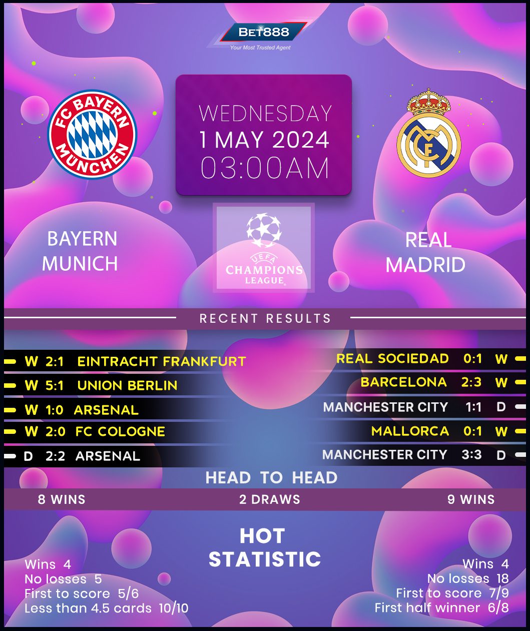 Allianz Arena is the venue as Bayern Munich and Real Madrid go head-to-head in the first leg of their blockbuster Champions League semi-final tie.