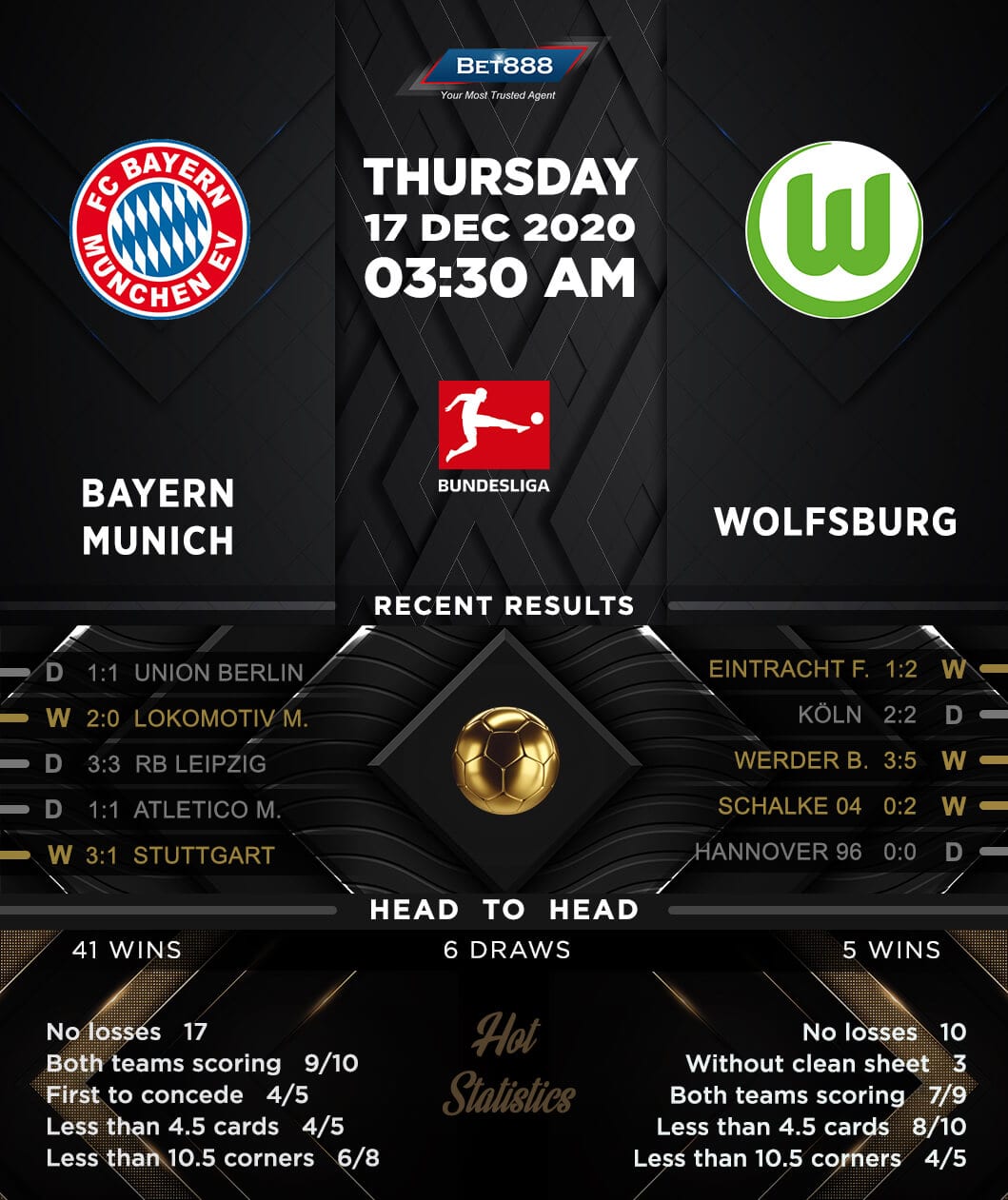 Bayern Munich will be looking to return to winning ways in the Bundesliga when they take on a Wolfsburg side they’ve beaten ‘to nil’ in both of their previous league H2Hs held at the Allianz Arena.