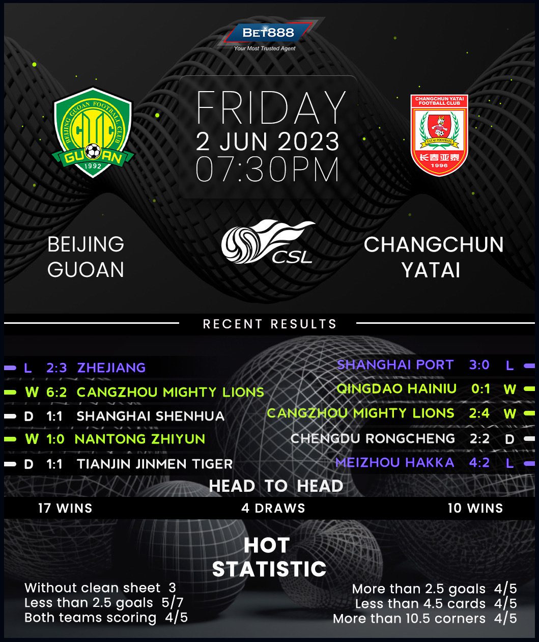 Beijing Guoan and Changchun Yatai are set to trade tackles in a handsomely-looking Chinese Super League encounter at Worker’s Stadium.