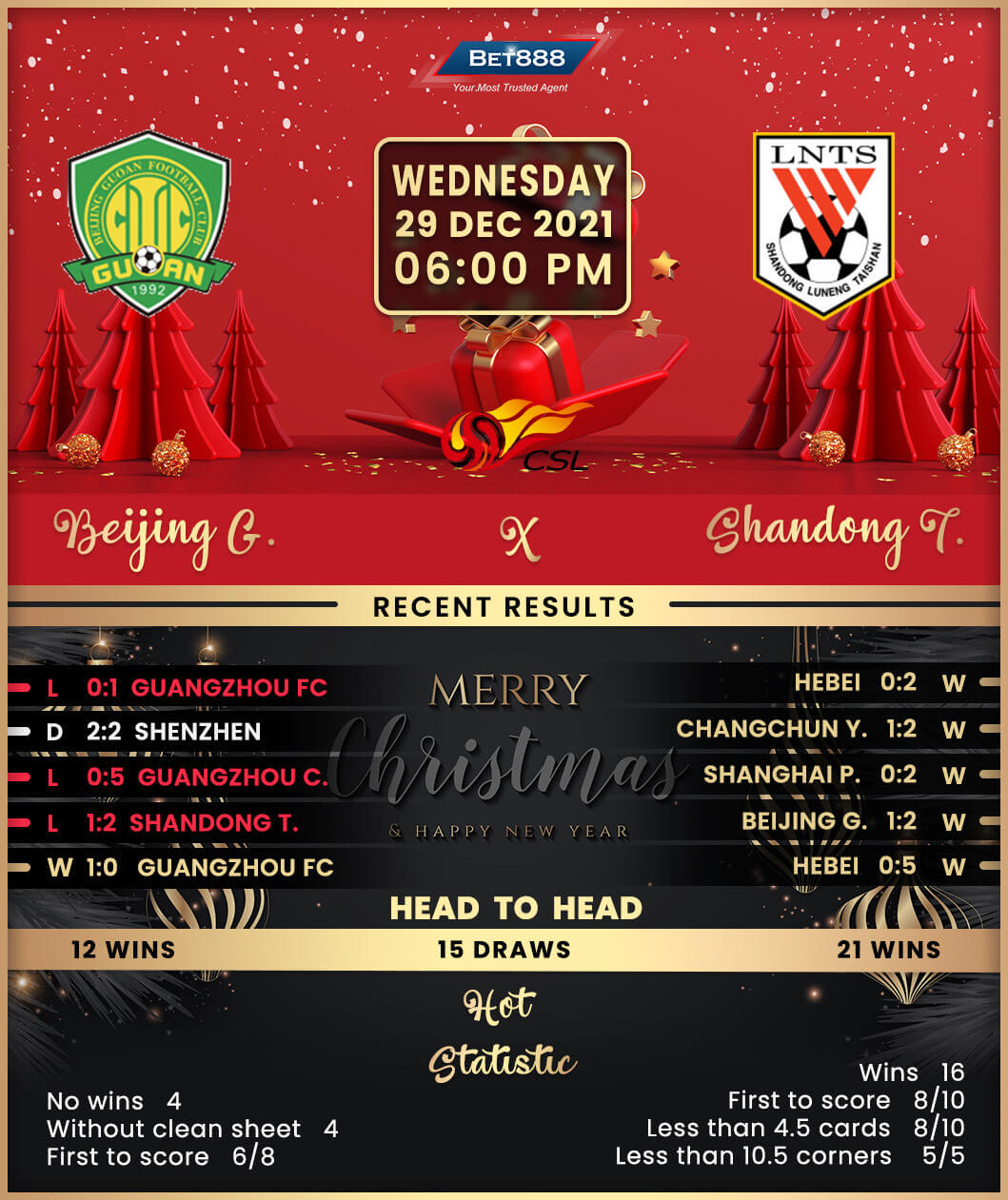 Beijing Guoan and Shandong Taishan go head-to-head in a mouth-watering Chinese Super League fixture at the Guangzhou Higher Education Mega Center Central Stadium.