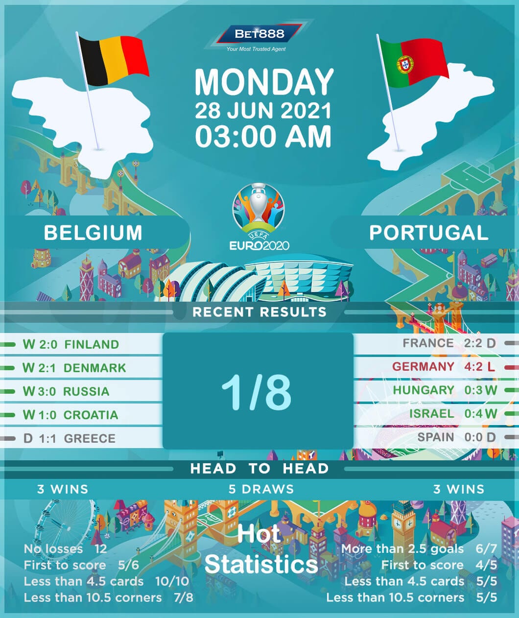 Defending Euro champions Portugal will face a stern test in the round of 16 as they take on a rampant Belgium side at the Estadio de La Cartuja in a mouth-watering clash.