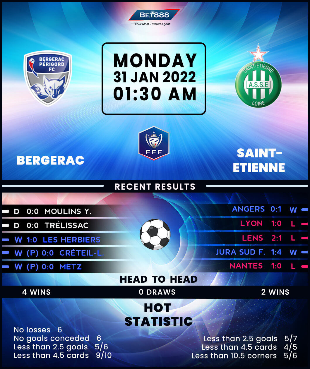 Saint-Etienne will be overwhelming favourites to advance to the Coupe de France quarter-finals when they take on Bergerac at the Stade Francis Rongieras.