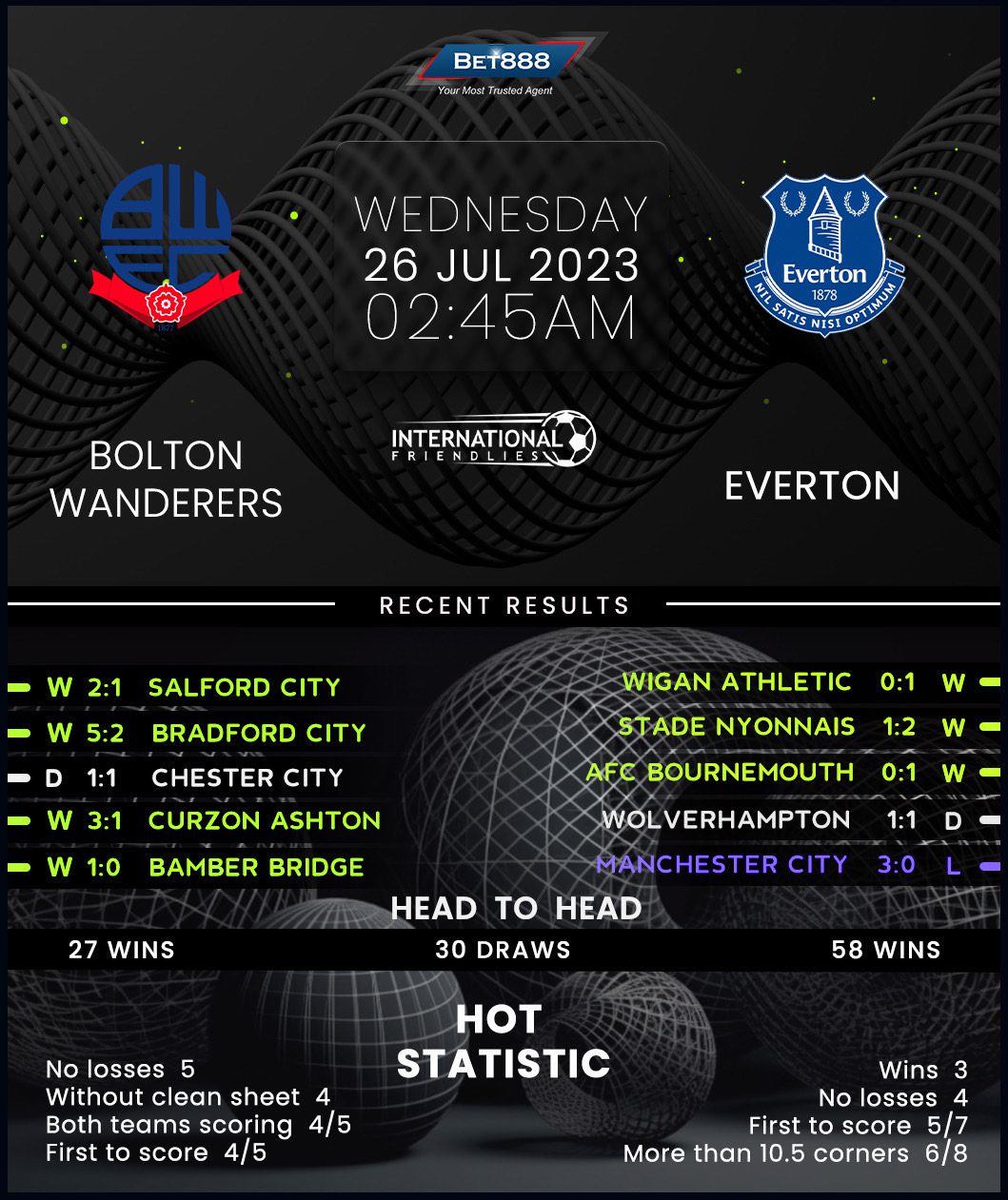 It’s been a decent pre-season for Bolton Wanderers so far as they’ve gone unbeaten in all four summer friendlies (W3, D1), though each game was against lower-division sides. Despite reaching the League One playoffs last season, Ian Evatt’s men couldn’t secure Championship promotion, losing 2-1 to Barnsley on aggregate in the semi-finals. But playoff qualification could still be encouraging ahead of their first meeting with Everton since 2013. Interestingly, they’ve alternated between victories (2) and defeats (2) across their last four H2Hs, with each match (won/lost) seeing the winner on the day score precisely twice. Scoring shouldn’t be a problem for Bolton, considering they’ve found the net in four straight outings heading into this fixture.