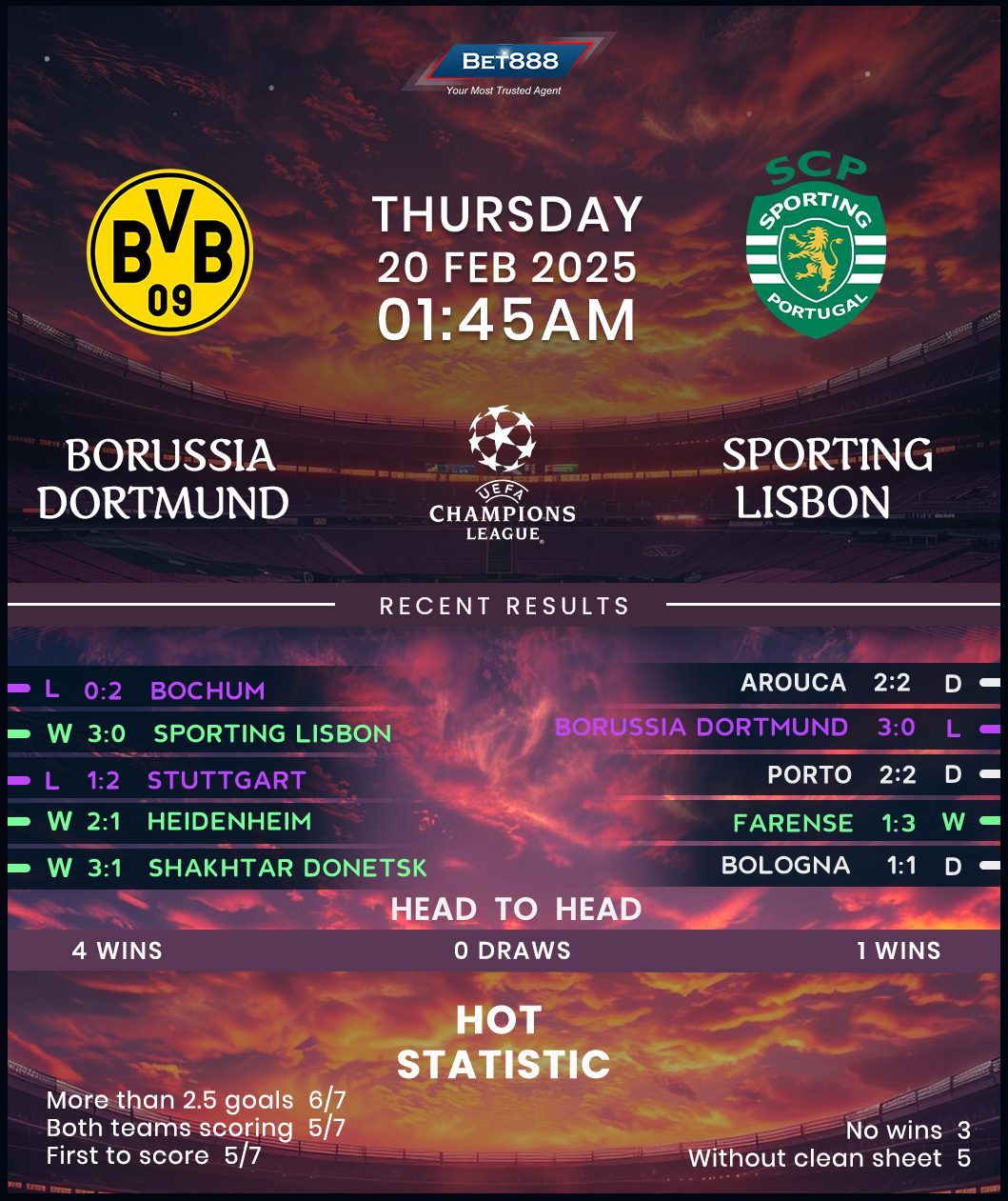 Signal Iduna Park forms the backdrop for the return leg of a nearly-decided Champions League knockout playoff tie between Borussia Dortmund and Sporting CP.