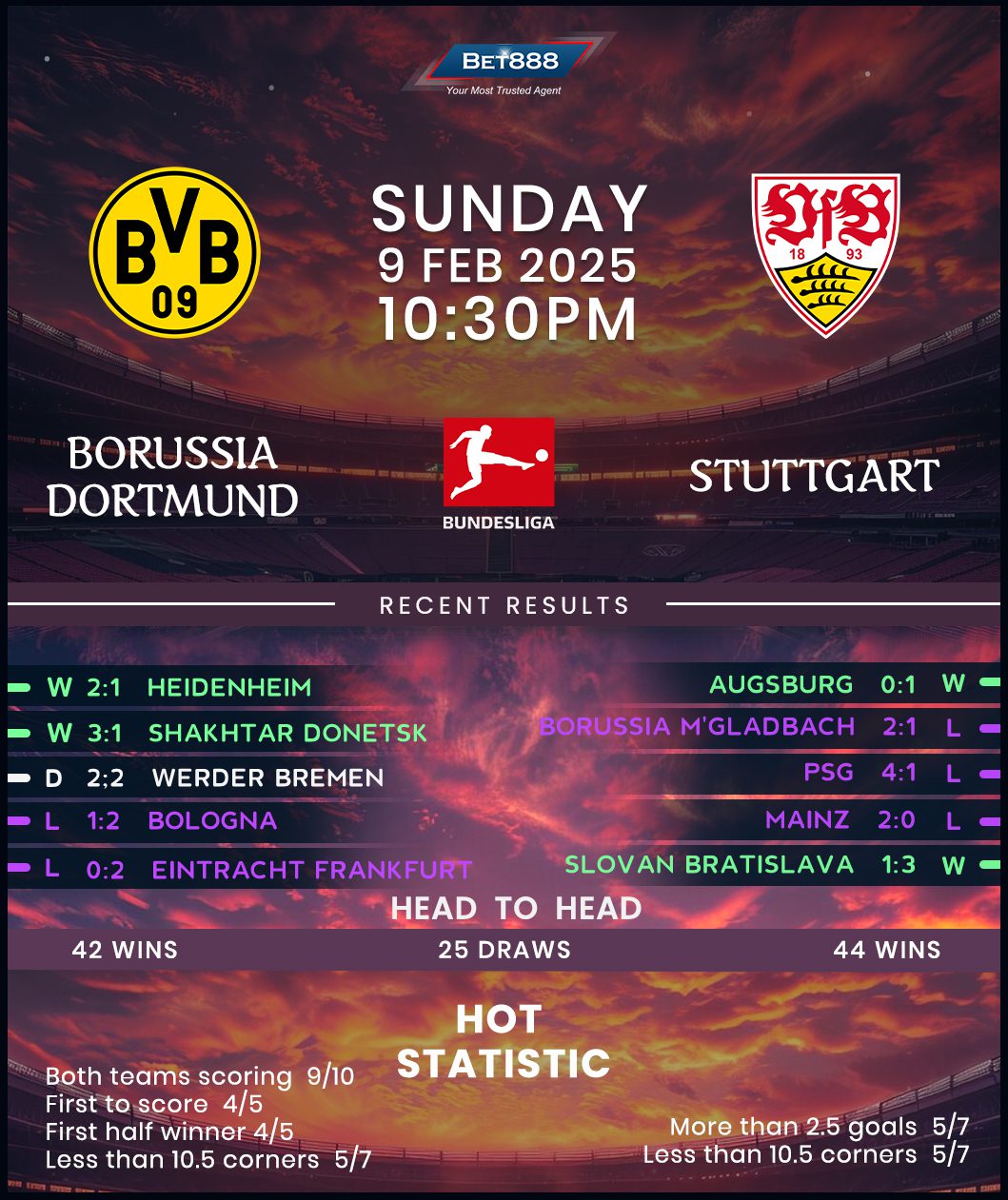 In the meantime, after a four-game winning streak to start the new calendar year, Eintracht Frankfurt’s form has fallen off a cliff, with the visitors taking this trip winless in three (D2, L1). Both draws came in the Bundesliga, extending the visitors’ unbeaten league run to five matches (W3, D2) as they boast a six-point lead on fifth-placed Stuttgart. Chances are they’re going to add to that tally. Indeed, Dino Toppmoller’s charges haven’t lost any of their last eight clashes against Gladbach (W5, D3), including a 2-0 win in this season’s reverse fixture. Furthermore, yet to lose a Bundesliga outing in 2025, ‘Die Adler’ look set for their first top-three finish in Germany’s top flight since 1992/93.