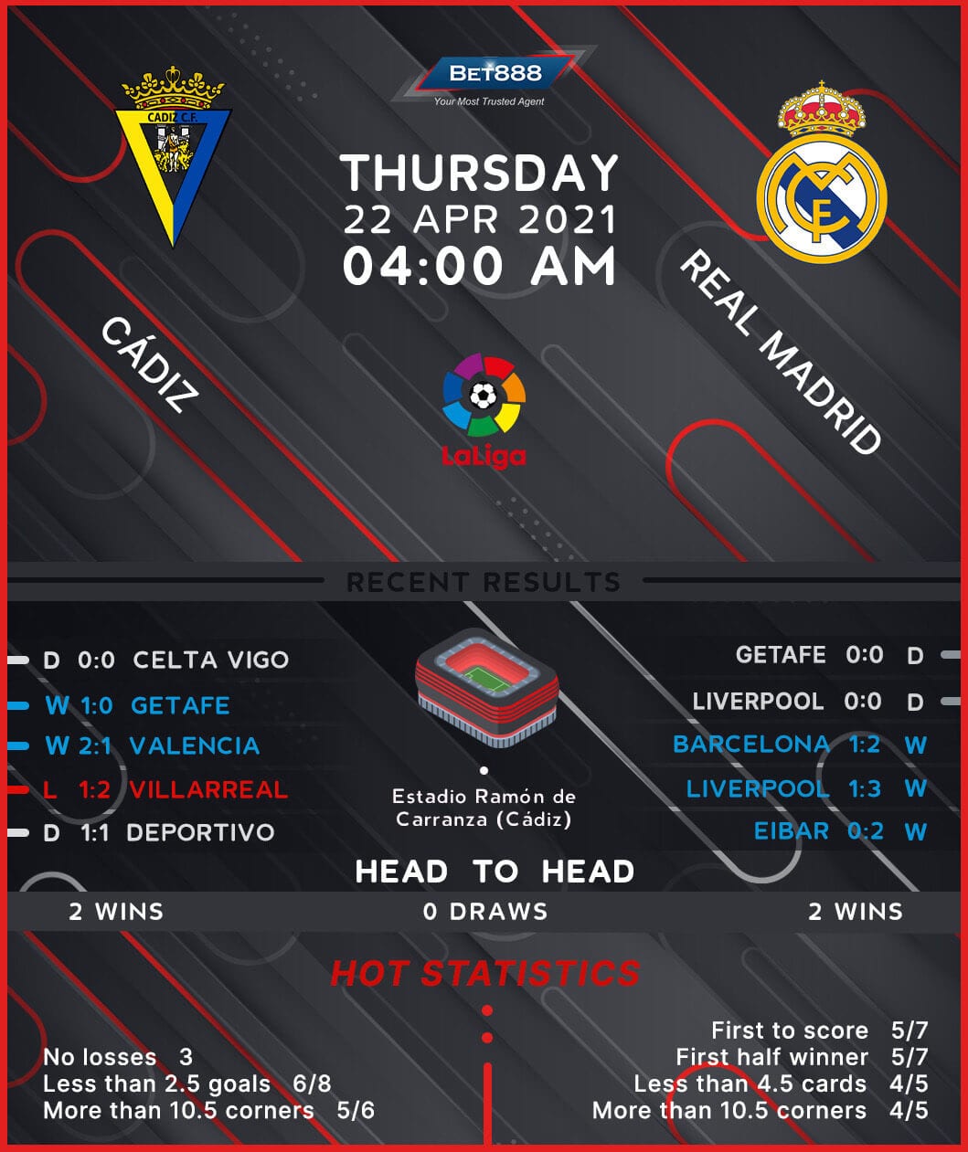 Real Madrid’s pursuit of their second successive La Liga title continues this midweek as they travel to the Estadio Ramón de Carranza to take on mid-table Cadiz.