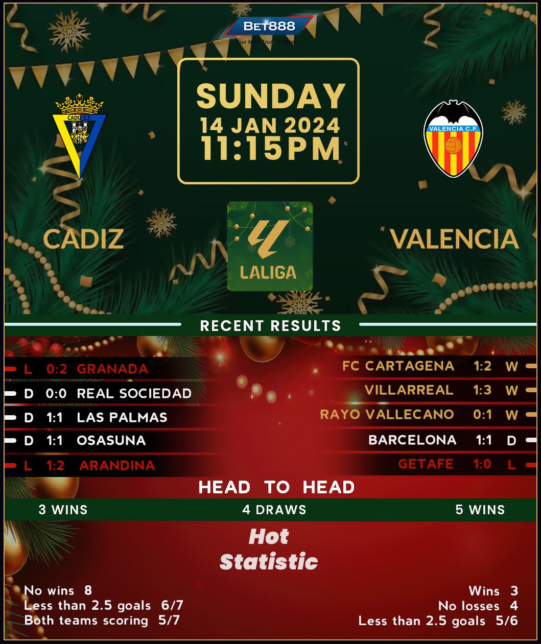 Estadio Nuevo Mirandilla is the venue as troubled Cadiz and in-form Valencia lock horns in a bottom-half La Liga clash.
