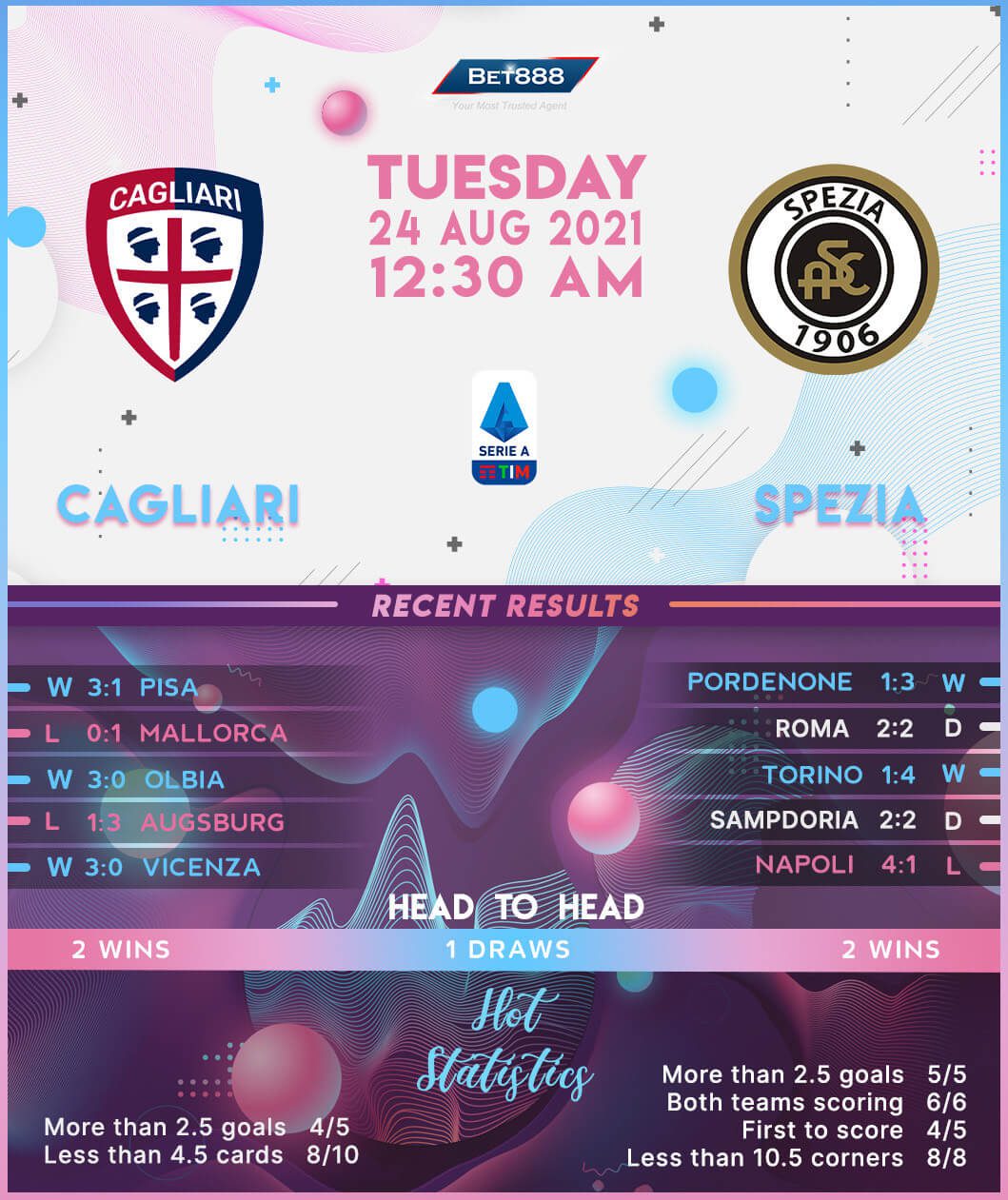 Cagliari and Spezia go head-to-head at Sardegna Arena in their opening 2021/22 Serie A fixture.