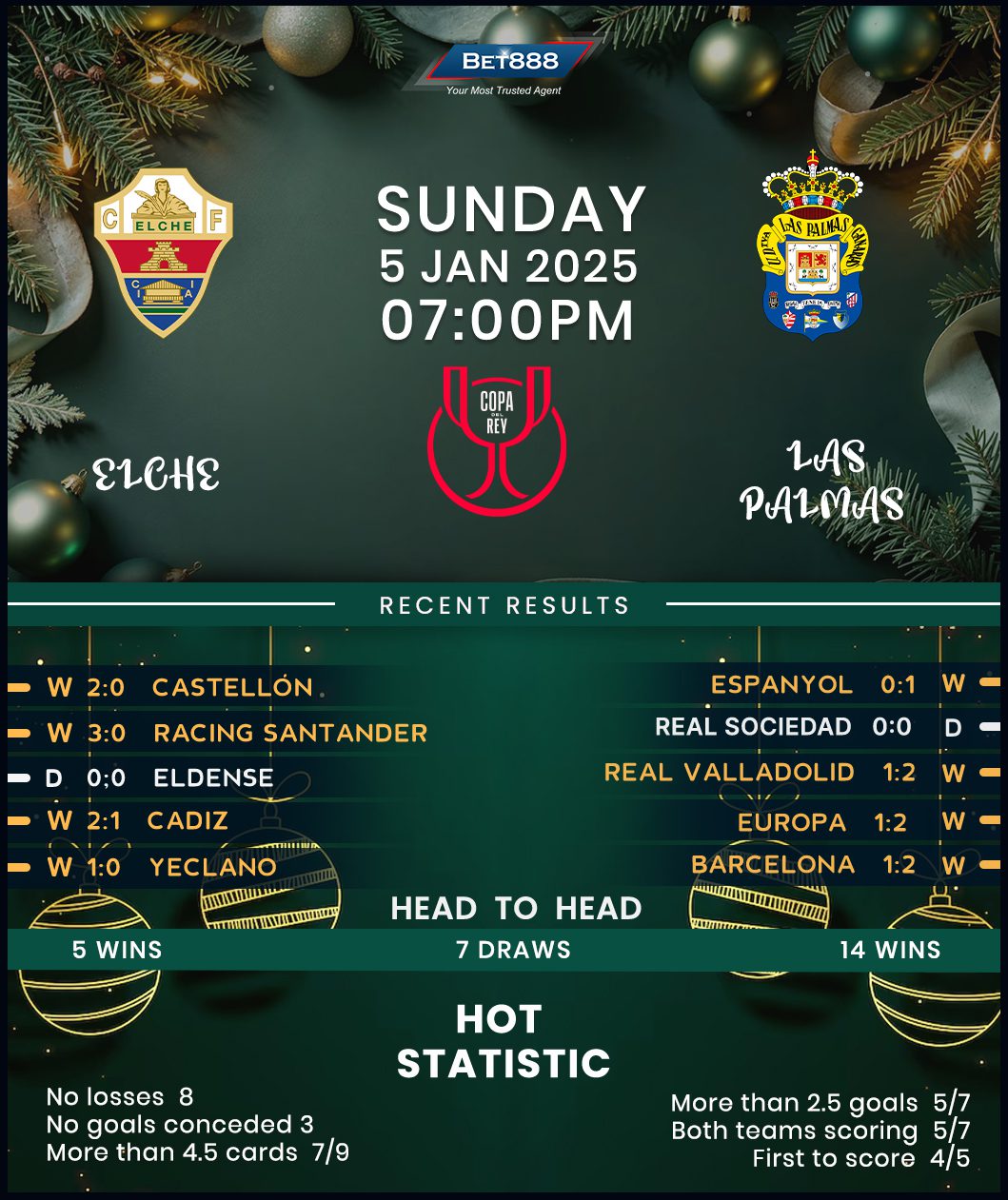 Despite facing below-par opposition in the opening two Copa del Rey rounds, Leganes have reached this stage by the skin of their teeth. After a dramatic 2-1 triumph against Ciudad de Lucena, they needed penalties to overcome fourth-tier Estepona last time out (2-2). They’ve since alternated between losing (2) and winning (1) in three La Liga fixtures, with both defeats in that run yielding a humiliating three-goal margin. If it’s any consolation, Borja Jimenez’s men have avoided defeat in four of their last five away games in all competitions (W3, D1), with three of them featuring over 2.5 goals and both teams on the scoresheet. Leganes’ most recent road trip produced a shocking result as they stunned Barcelona 1-0, setting themselves up nicely for this one-off tie.