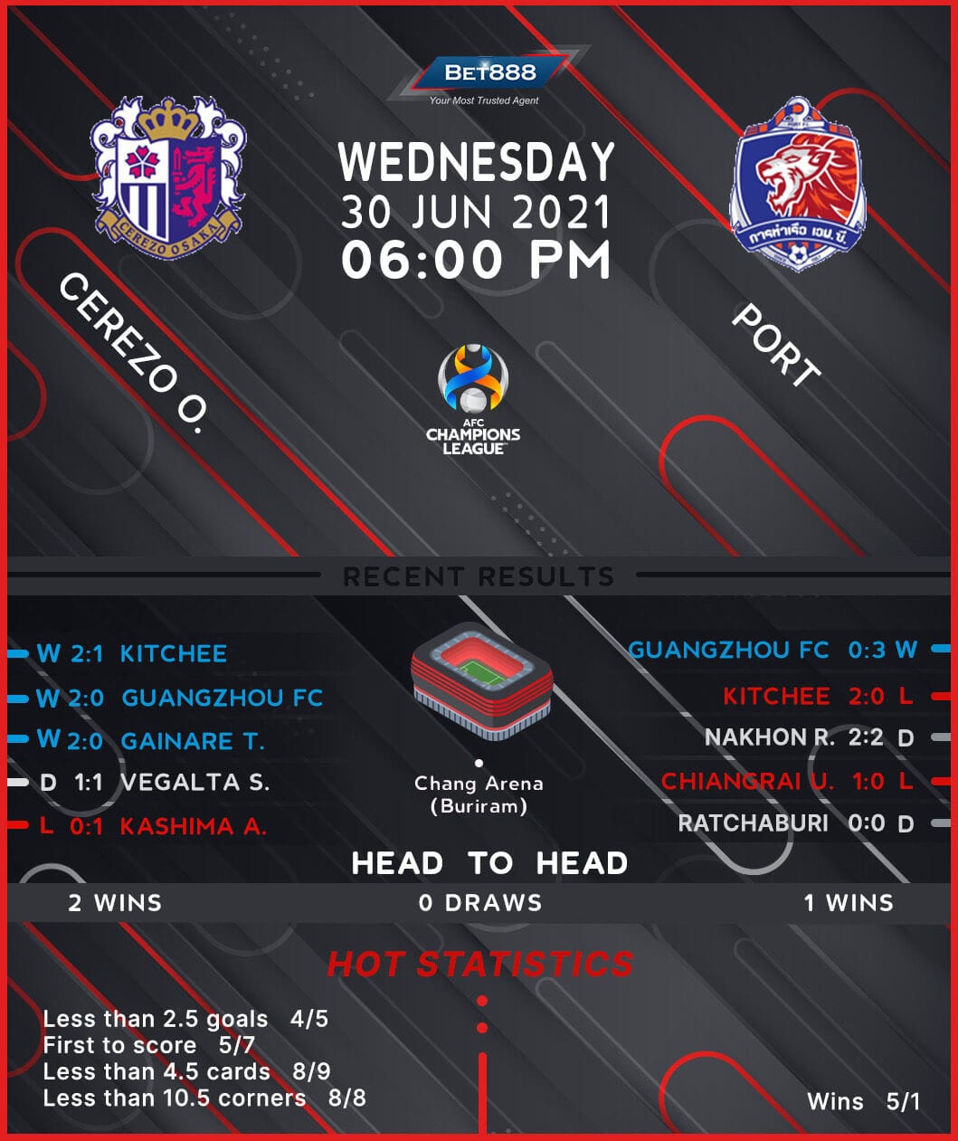 Chang Arena is the venue as Cerezo Osaka and Port go head-to-head in the third round of the AFC Champions League group stage fixtures.