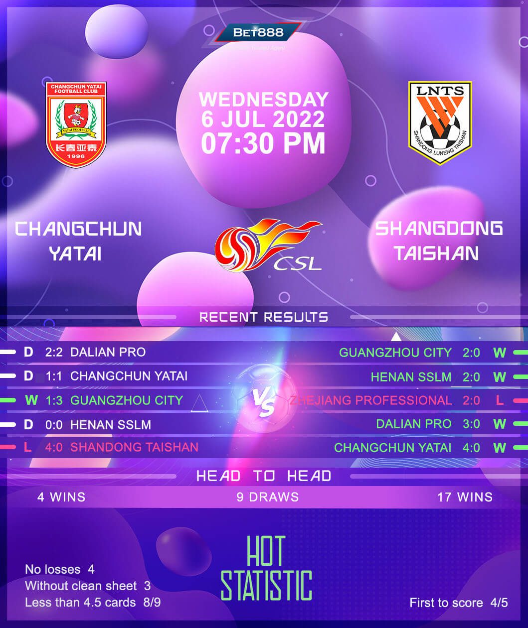 Since an embarrassing 4-0 defeat to Shandong in the reverse fixture back in mid-June, Changchun Yatai have gone unbeaten in four consecutive Chinese Super League games. Yet, three ended level (W1), including the last two on the spin. Despite Changchun’s sticky patch, they have been fun to watch, as two of their three most recent top-flight fixtures saw 4+ goals and both teams on the scoresheet. Playing at home may not necessarily bolster their vengeance prospect, given that they’ve drawn their last three such fixtures since a 4-1 thumping of Guangzhou City in their home curtain-raiser. Adding to this sentiment, Chen Yang’s men have won none of their last five top-flight home meetings with Shandong (D2, L3).