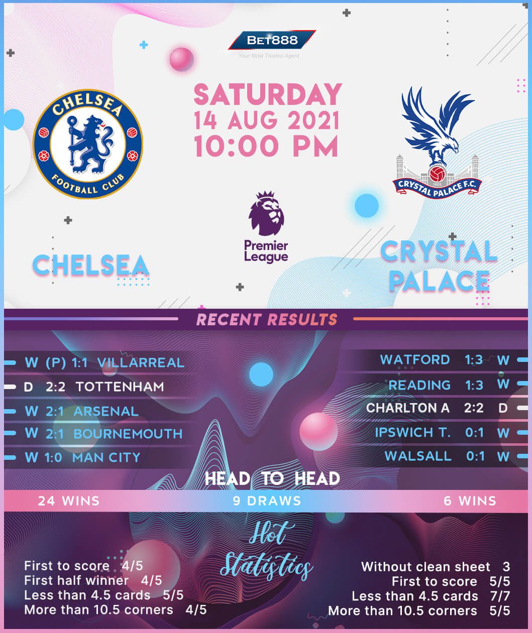 Fresh from lifting the UEFA Super Cup trophy and encouraged by last season’s Champions League triumph, Chelsea will be aiming to win their seventh Premier League title this term. However, an indifferent form across their previous five opening Premier League matches on home turf (W2, D1, L2) is barely inspiring. Yet, the ‘Blues’ have won their last four top-flight H2H matches against Crystal Palace at Stamford Bridge by an aggregate score of 11-2, keeping a first-half clean sheet on each occasion. Those stats deserve special attention, considering Chelsea finished the 2020/21 Premier League campaign as one of just seven teams to concede less than ten first-half goals at home (9). Still, they lost two of their final three league games last term (W1), more than they had in their previous 16 under Thomas Tuchel (W10, D5, L1).