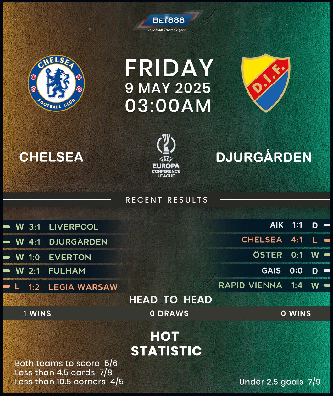 On the other hand, Djurgarden flopped in their first-ever encounter against English opponents, and it’s hard to expect them to make things right in West London. Unable to recover from a dismal first-leg loss, the Swedes could only manage a 1-1 draw against domestic rivals AIK at the weekend to make it only one victory from their last four matches across all competitions (D2, L1). Djurgarden’s chances of progression are as slim as it gets, but they can draw heart from dispatching Rapid Vienna in the quarter-finals despite losing the first leg at home. An unlikely win in England’s capital would see Djurgarden become the first team in Swedish football history to pull off 11 victories in a single European campaign.