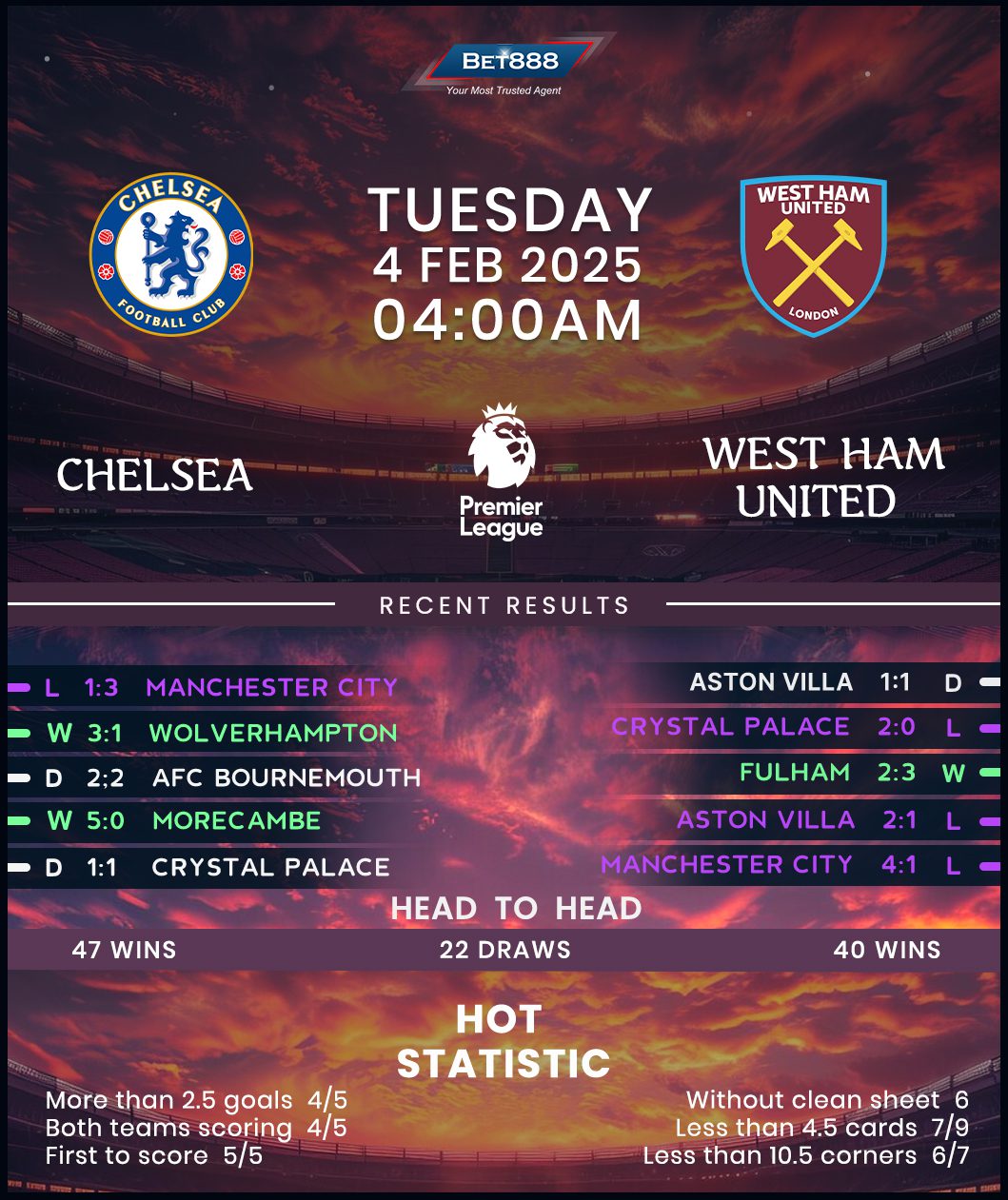 Stamford Bridge forms the backdrop for an all-London Premier League showdown between Chelsea and West Ham United.