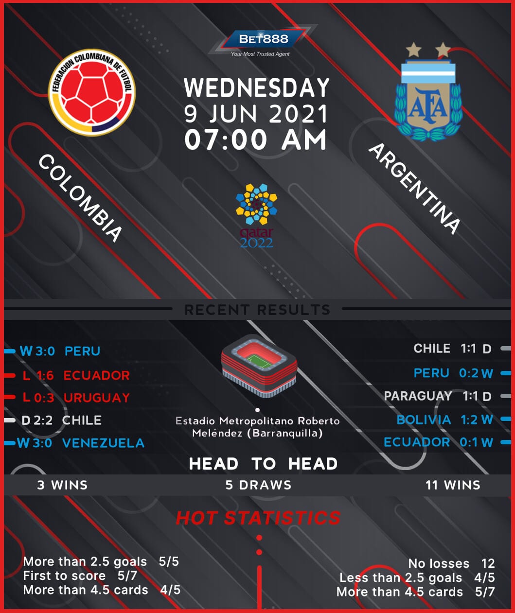 Colombia and Argentina are set to lock horns at the Estadio Metropolitano Roberto Meléndez in a heavyweight South American World Cup Qualifying affair.