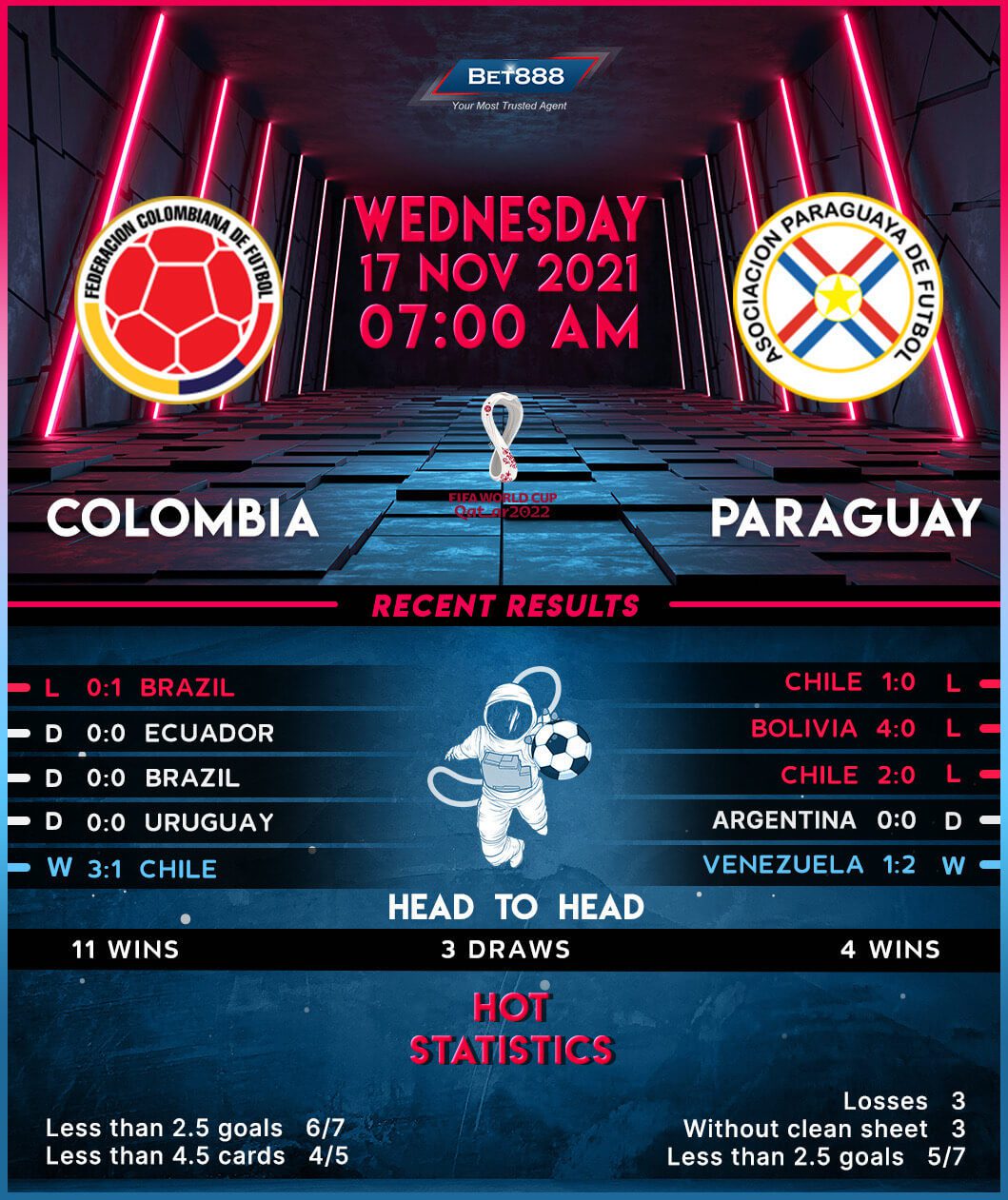 The two out-of-form South American teams will lock horns in a high-stake 2022 World Cup qualifying encounter at the Estadio Metropolitano Roberto Meléndez as Colombia take on Paraguay.