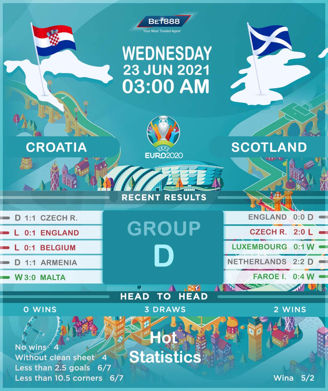 Croatia’s Euro 2020 journey has started with a whimper rather than a bang, with the 2018 World Cup runners-up failing to win any of their opening two Group D fixtures (D1, L1). As a result, they are now winless in their last three Euro matches in a row (D1, L2) since defeating Spain 2-1 in their final group stage game at Euro 2016. Zlatko Dalic’s men have to beat Scotland to return in contention for a place in the knock-outs. However, the Croats have failed to win any of their five historical H2Hs (D3, L2), drawing a blank in their previous two competitive meetings held on Scottish soil. Additionally, the ‘Blazers’ have picked up just two victories in their previous 11 international outings (D3, L6), failing to win any of the last four on the trot (D2, L2).