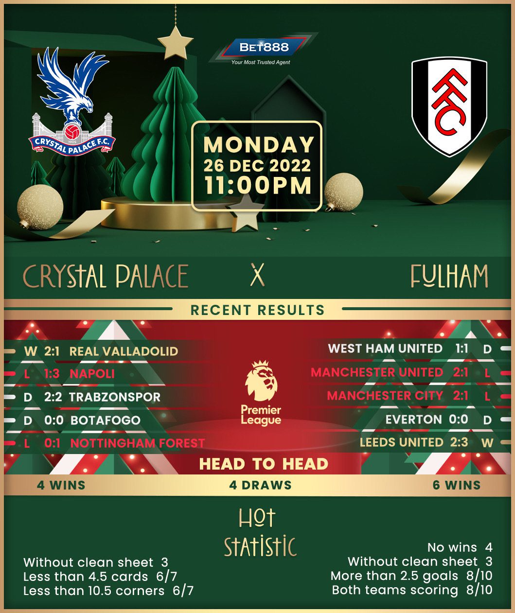 Out-of-form Fulham head to Selhurst Park to meet Crystal Palace in a mid-table Premier League clash on Boxing Day.