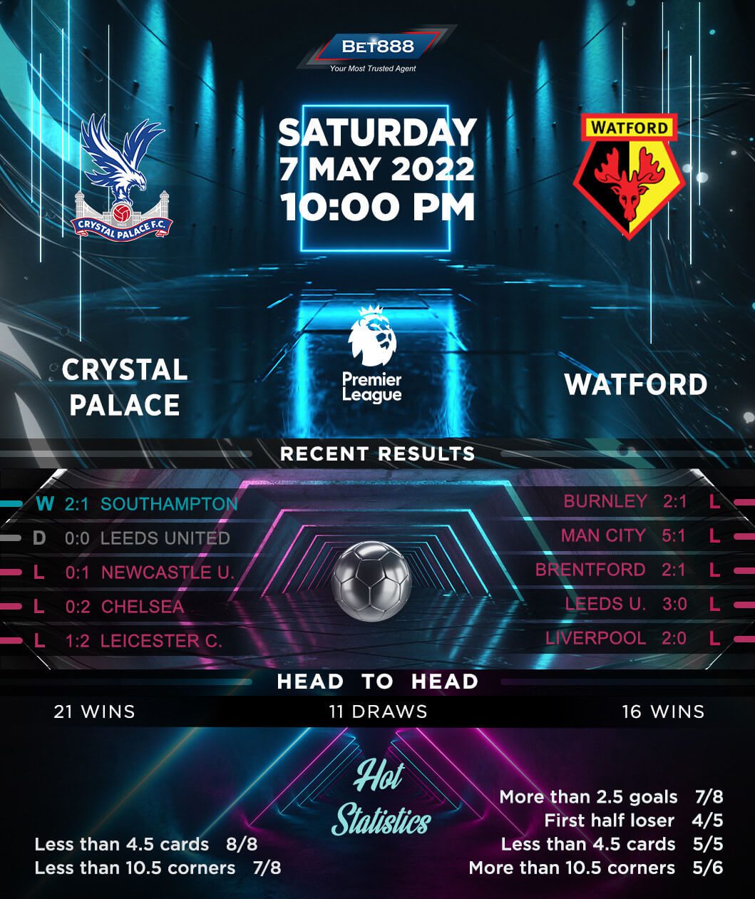 Crystal Palace will be aiming to send Watford back to the Championship when the two bottom-half Premier League sides lock horns at Selhurst Park.