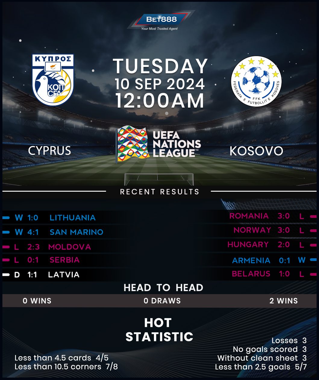 Cyprus and Kosovo are set to trade tackles in the second round of the UEFA Nations League at the AEK Arena.