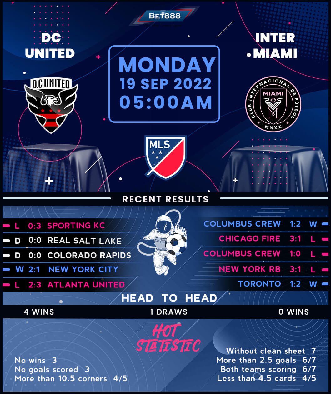 Pinned to the bottom of the Eastern Conference, DC United head into proceedings 14 points adrift of the playoff line and winless in their last four league fixtures (D2, L1). Manager Wayne Rooney’s top assignment is to recalibrate DC’s uneventful frontline that has failed to get on the scoresheet in three consecutive MLS outings. Furthermore, they’ve drawn a blank in their last three league games on home turf (D2, L1), including a dreadful 6-0 defeat to Philadelphia Union in late August. Inter’s visit to Audi Field could come in handy, considering the ‘Black-and-Red’ have netted 2+ goals in three of their four previous MLS H2Hs (W3, D1).