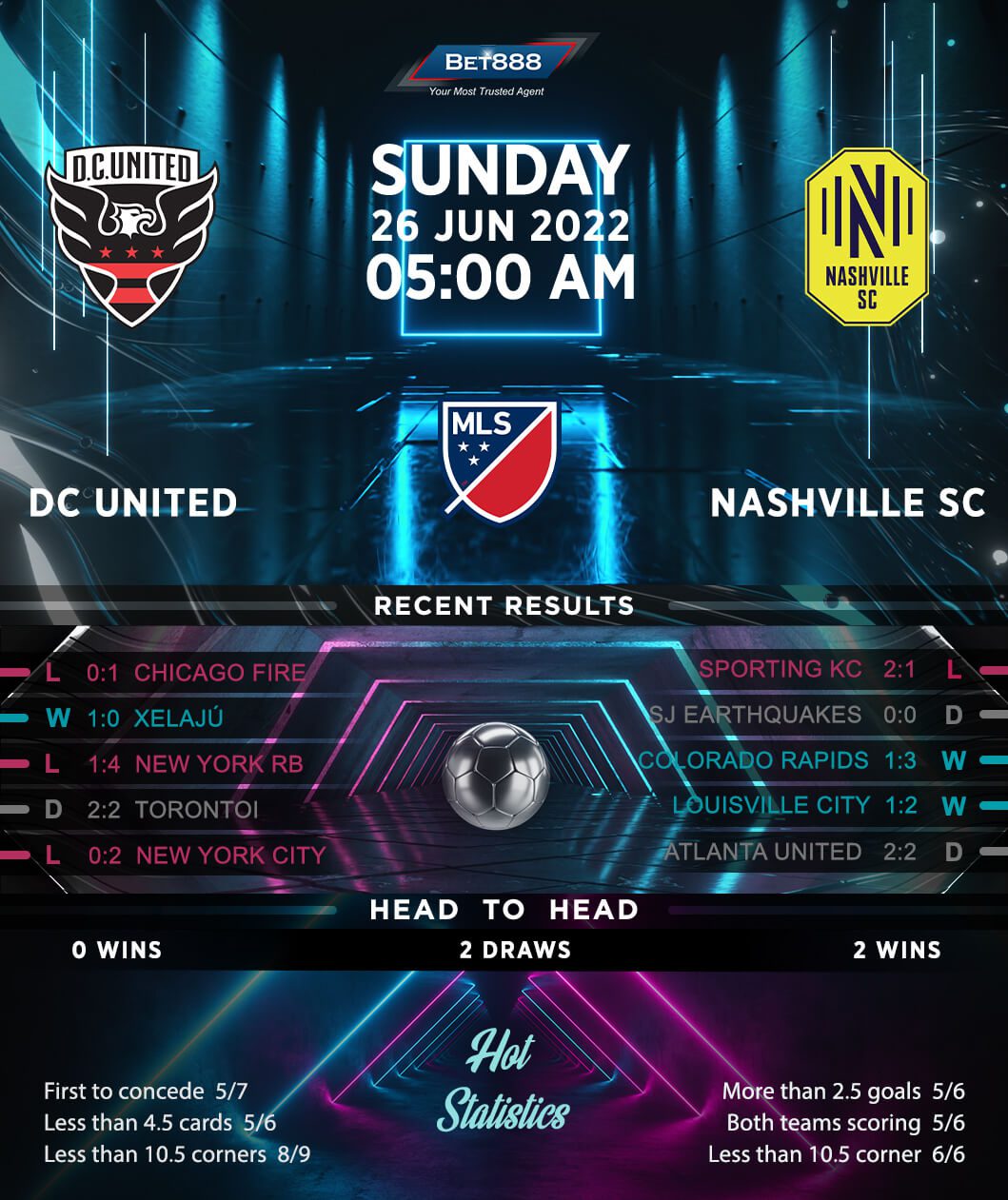 In the meantime, Nashville turned a 1-0 half-time lead into a 2-1 defeat to Sporting KC at home last time out, ending a run of four unbeaten MLS fixtures (W2, D2). Keen to get back to winning ways, the visitors can fall back on their recent away form. Kyle Roelke’s men have gone from three winless road trips (D1, L2) to winning back-to-back domestic matches on hostile turf. There’s plenty of reason for optimism in the travelling camp, as Nashville are unbeaten in three historic MLS meetings with DC United (W2, D1), keeping two clean sheets in that sequence. By contrast, they’ve conceded at least once in their last six away domestic encounters.