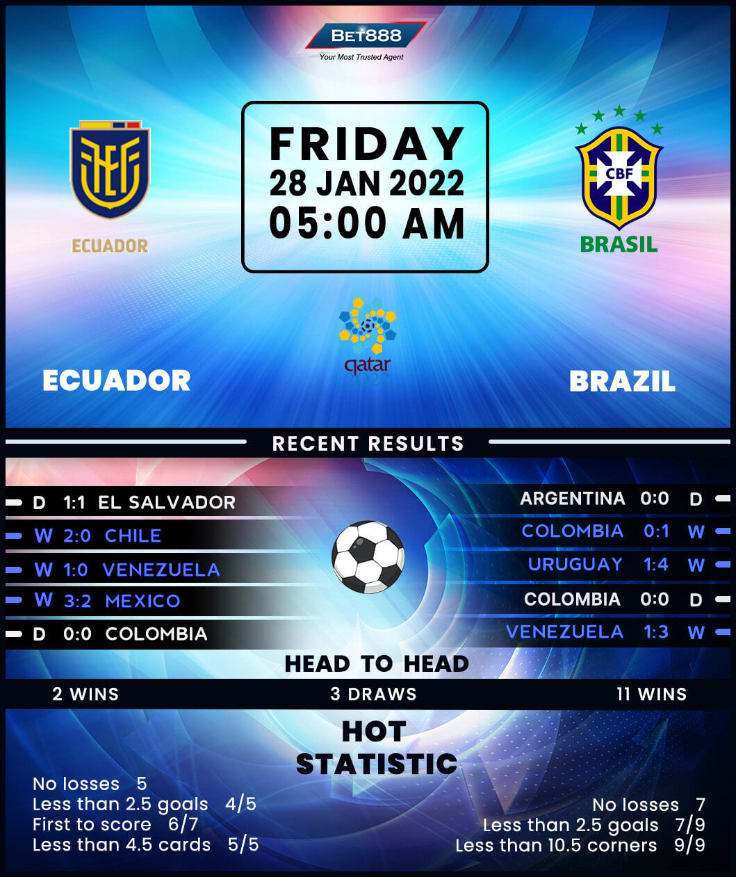 An unexpected 2-0 victory at the expense of Chile last time out made it two World Cup qualifying wins in a row as Ecuador look to be waltzing away with the ‘Qatar 2022’ spot. With four games left, ‘La Tri’ boast a six-point lead over fifth-placed Peru and appear to be on course to reaching only their fourth-ever World Cup finals. Now back on home turf in Quito, Gustavo Alfaro’s men will be looking to build on a run of four consecutive World Cup qualifying clean sheets at home (W3, D1) and defy the odds against the continental powerhouse Brazil. That could be easier said than done, as they’ve gone winless in their last 11 H2HS (D3, L8), including a 2-0 defeat in the reverse fixture in Porto Alegre, back in June 2021.